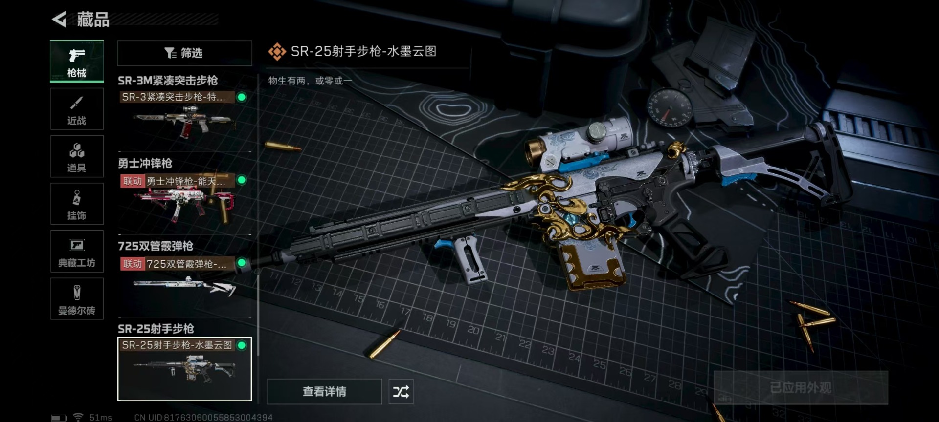 - [11249832]可二次 可修改实名 实名:可修改 顶级安全箱(3×3)9.15号到期 总资产:164.3 哈夫币:6.097 传说武器皮肤:近战-影锋,近战-黑海,SCAR-H战斗步枪-水墨云图,AWM狙击步枪-影锋,M1014霰弹枪-影锋,SCAR-H战斗步枪-铁艺苍穹,AK-12突击步枪-夜鹰,SMG45冲锋枪-骑士,QJB201轻机枪-黑海,MP5冲锋枪-黑海,K437突击步枪-极速狂飙,复合弓-黑-天际线,725双管霰弹枪-送葬人-无题密令,MP7冲锋枪-深空威胁,K437突击步枪-猩红乐队,G18-飞虎,M4A1突击步枪-蚀金玫瑰 史诗武器皮肤:SR-3M紧凑突击步枪-荒野求生,SVD狙击步枪-荒野求生,MP7冲锋枪-无垢 干员外观:红狼-蚀金玫瑰,骇爪-水墨云图,威龙-飞虎