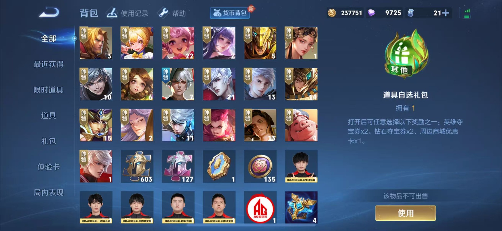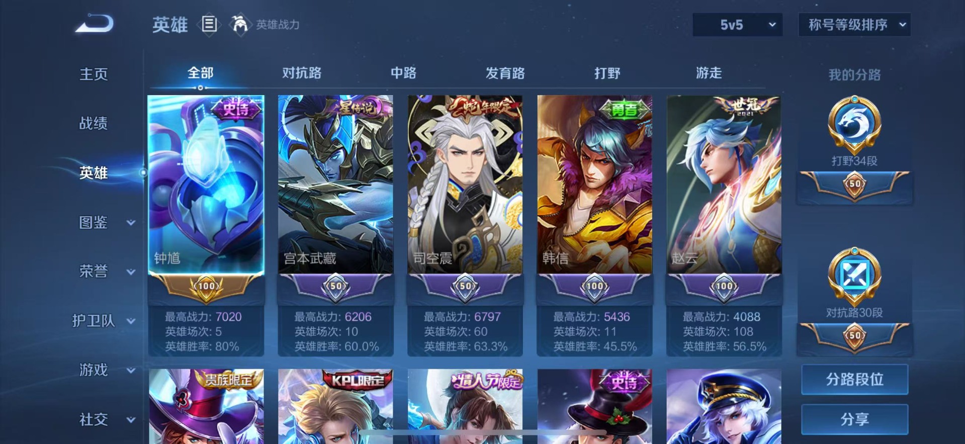 - PX_2073460-贵族等级: V10 英雄数: 125 皮肤数: 215 荣耀水晶: 武则天,杀手不太冷,全息碎影 星传说: 幻海之心,未来机甲,幽冥之眼,金色仲夏夜 传说皮: 黄金狮子座,黄金射手座,黄金白羊座,猫影幻舞,久胜战神,云霓雀翎,末日机甲-孙尚香,地狱火,仲夏夜之梦,海洋之心,地狱之眼,胖达荣荣,超时空战士-狄仁杰,艾琳觅芳踪 限定皮: 李小龙,梁祝,魔法小厨娘,玄嵩,岱宗,幽恒