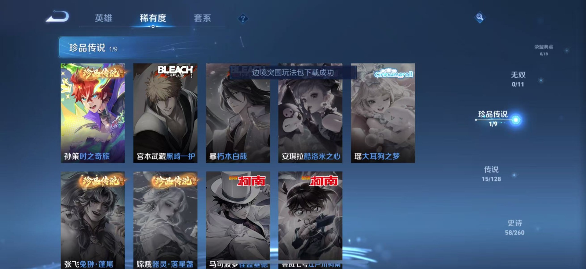 - [11972818]V8 3无双 2珍品传说 18传说 122英雄 216皮肤 可修改实名 优质装备:韩信群星魔术团(韩信无双),器灵·螭龙剑,天机白泽,朽木白哉,炽阳神光,一念神魔,李逍遥,时之恋人-刘备(电焊工),超时空战士-狄仁杰,花朝如约(花篮子),山海·炽霜斩(李信年限) 珍品传说:时之奇旅-孙策 传说皮:落雪白狼,九山相柳,祥瑞亨通,幻光神枪 珍宝阁皮:妄想食味,万物之道 限定皮:愿照·九州拓(澜年限),愿照·山河定(司空震年限),鸣野蒿,至尊宝,魔法小厨娘,飞衡(韩信年限),诗剑行,齐天大圣,五谷丰年,梁祝,祈雪灵祝(雪兔子),一生所爱,百木心枪 史诗皮:鸭鸭历险记-刘禅,器灵·浮梦炉,星界战将,龙之律动,茶境仙,东方月初,蒙犽顽岩魄,百相守梦-黄忠,紫霞仙子,特工魅影,千年之狐,魅语,蒙恬荣光圣徽,冰冠公主,暗夜猫娘,末日机甲-吕布,时之恋人-孙尚香,节奏热浪,修罗,女仆咖啡,摇滚巨星,水果甜心,星夜王子,功夫厨神,德古拉伯爵,暗隐猎兽者,幽灵船长,鬼剑武藏,暗渊魔法,天秀·启明,舞动绿茵,地狱岩魂,缤纷独角兽,乘风破浪,逐浪之夏,水晶猎龙者,曙光守护者,原初追逐者,鹰眼统帅,魅力维加斯,黎明之约,赏金猎手,无心