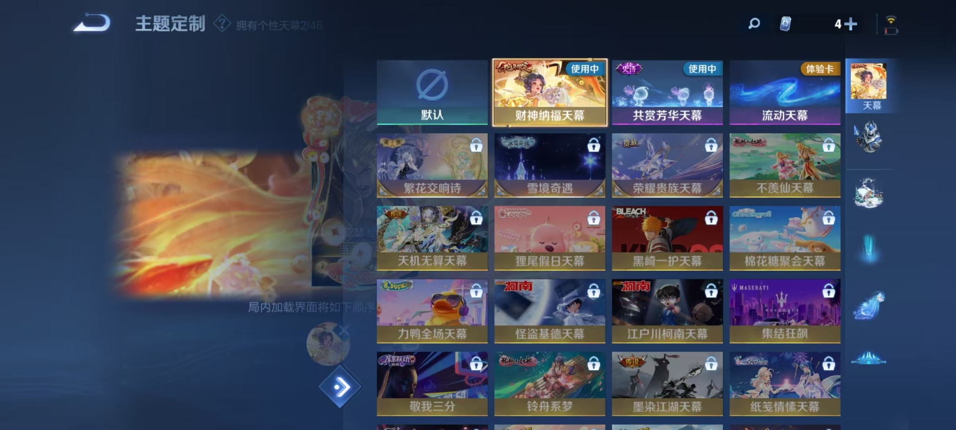 鲁班七号乒乒小将,裴擒虎李小龙,马可波罗深海之息,桑启鸣野蒿,女娲愿照·千秋盛,孙悟空孙行者,韩信逐梦之影,百里守约朱雀志,澜愿照·九州拓