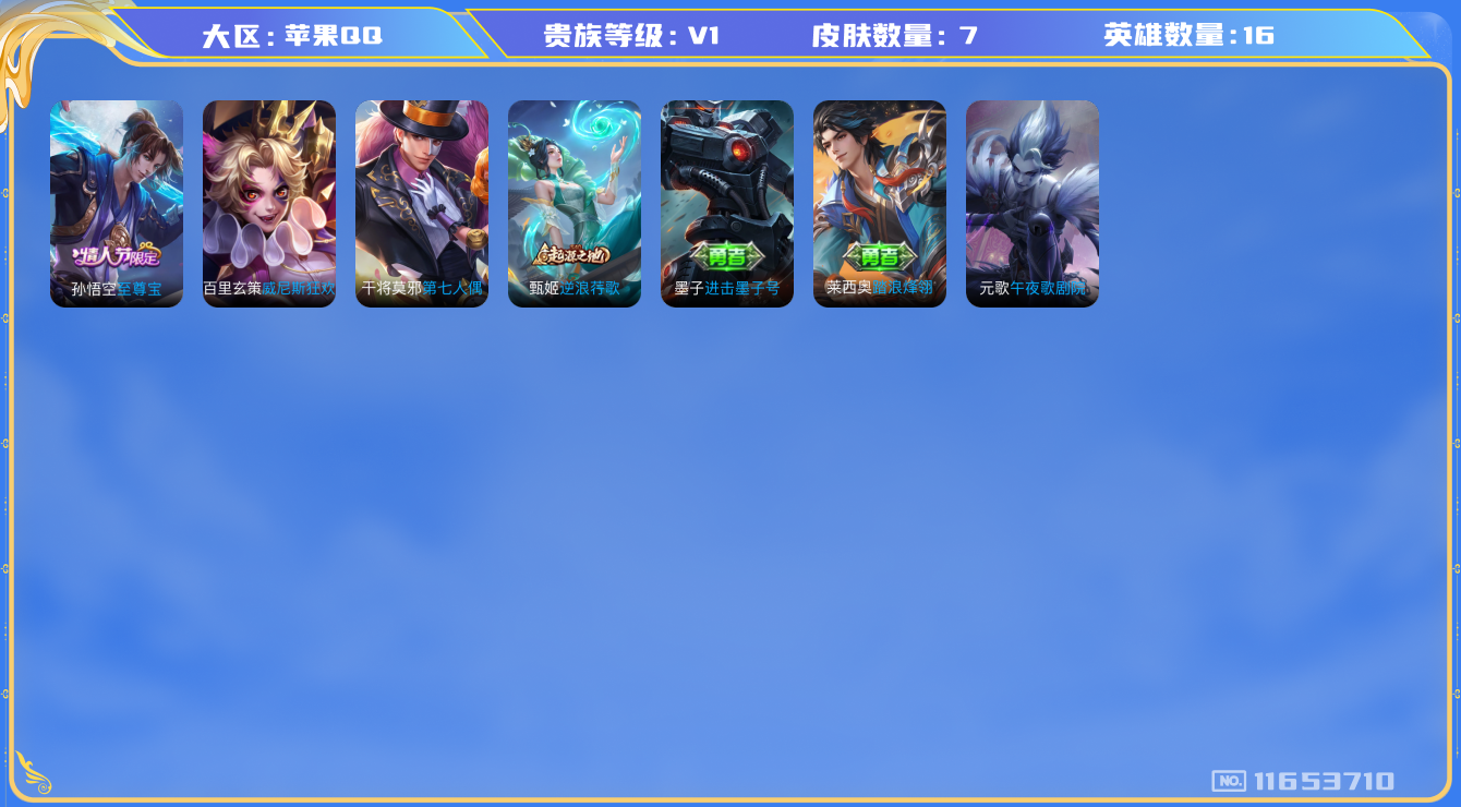 [11653710]V1 16英雄 7皮肤 可修改实名 限定皮:至尊宝