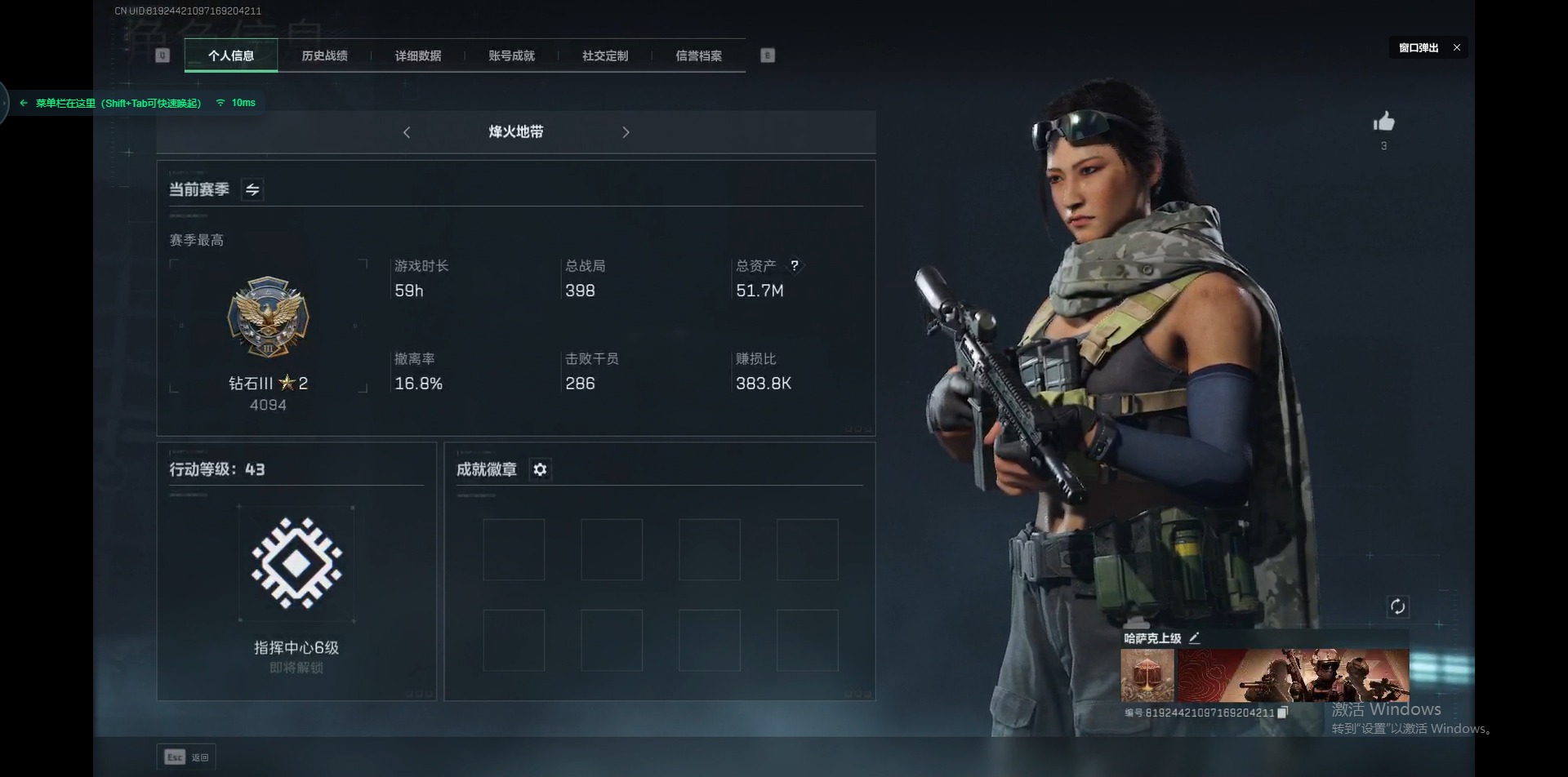 [11654416]总资产:51.7M 6传说枪械 哈夫币:8.698K 进阶安全箱(2×2)9.15号到期 可二次 可修改实名 烽火地带段位:钻石 全面战场段位:无段位 传说武器皮肤:UZI冲锋枪-特斯拉线圈,AK-12突击步枪-特斯拉线圈,SR-3M紧凑突击步枪-特斯拉线圈,勇士冲锋枪-能天使-午夜邮差,复合弓-黑-天际线,M4A1突击步枪-阿米娅 史诗武器皮肤:QJB201轻机枪-Old Habits,M16A4突击步枪-竞赛选手,SV-98狙击步枪-林中猎手