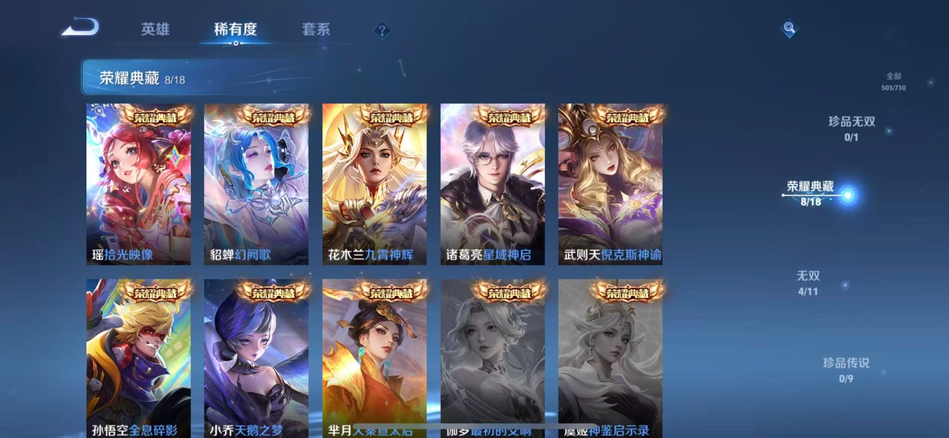 小乔天鹅之梦,武则天倪克斯神谕,诸葛亮星域神启,花木兰九霄神辉,芈月大秦宣太后,孙悟空全息碎影,瑶拾光映像,貂蝉幻阙歌