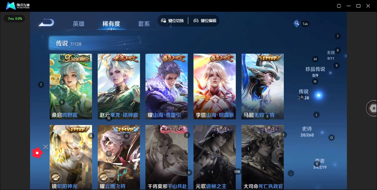 - [11819411]V7 1典藏 4传说 122英雄 203皮肤 可修改实名 优质装备:鸣剑·曳影,末日机甲-孙尚香(绿蚂蚱),地狱火,惊梅引 传说皮:幻光神枪 珍宝阁皮:优雅恋人,蔷薇恋人 限定皮:至尊宝,瑞麟志(木兰年限),高山流水,五谷丰年,梁祝,天狼绘梦者,李小龙,逐梦之影,猪悟能 史诗皮:黄金分割率,千年之狐,电玩·爆裂旋风,江河有灵,偶像歌手,魅语,冰冠公主,猫狗日记-孙策,修罗,女仆咖啡,水果甜心,绅士熊喵,星夜王子,心灵骇客,功夫厨神,德古拉伯爵,暗隐猎兽者,舞动绿茵,纤云弄巧,缤纷独角兽,乘风破浪,逐浪之夏,水晶猎龙者,金属风暴,原初追逐者,圣诞狂欢,圣诞恋歌,鹰眼统帅,王者之锤,魅力维加斯,黎明之约,未来纪元-赵云