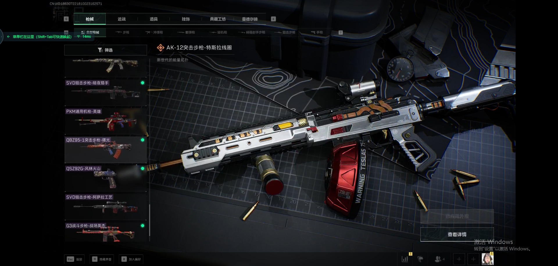 [11655389]总资产:109.2M 13传说枪械 哈夫币:28.933K 进阶安全箱(9.17到期) 可二次 可修改实名 烽火地带段位:黑鹰 全面战场段位:上等兵 传说武器皮肤:SR-25射手步枪-水墨云图,SMG45冲锋枪-骑士,UZI冲锋枪-特斯拉线圈,AWM狙击步枪-捞点薯条,腾龙突击步枪-捞点薯条,93R-捞点薯条,AK-12突击步枪-特斯拉线圈,SR-3M紧凑突击步枪-特斯拉线圈,勇士冲锋枪-能天使-午夜邮差,Vector冲锋枪-能天使-午夜邮差,复合弓-黑-天际线,M4A1突击步枪-阿米娅,CAR-15突击步枪-阿米娅 史诗武器皮肤:SR-3M紧凑突击步枪-英雄,AUG突击步枪-蝮蛇,G3战斗步枪-战场英杰,Ash-12战斗步枪-守夜人,M16A4突击步枪-竞赛选手,AS Val突击步枪-尖端治疗,M700狙击步枪-守夜人,SG552突击步枪-尖端治疗,M1014霰弹枪-林中猎手,MP5冲锋枪-深海恐惧,SG552突击步枪-深海恐惧,AKM突击步枪-林中猎手,.357左轮-幸运时刻,SVD狙击步枪-暗夜猎手,QCQ171冲锋枪-禁卫,SV-98狙击步枪-林中猎手,M250通用机枪-囚徒,SV-98狙击步枪-囚徒,QBZ95-1突击步枪-曙光,沙漠之鹰-曙光,Vector冲锋枪-阿萨拉文明,SVD狙击步枪-阿萨拉工艺,M7战斗步枪-禁卫,PKM通用机枪-英雄,QSZ92G-风林火山