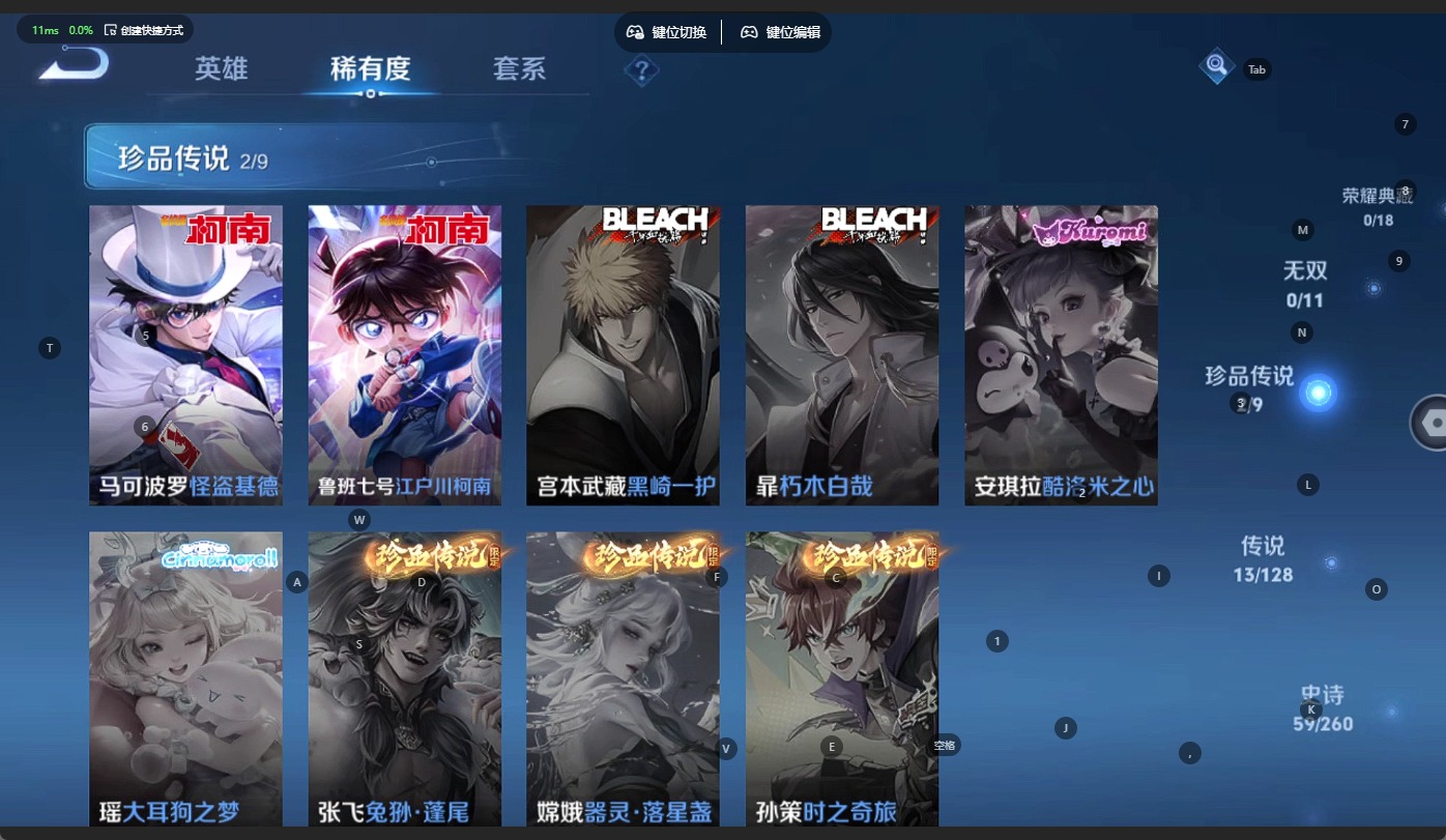 - [11297179]V6 2珍品传说 5传说 122英雄 124皮肤 可修改实名 禁止排行榜到2026年2月27日解除 优质装备:江户川柯南,怪盗基德,炽阳神光,记忆之芯(机甲兔) 珍宝阁皮:胡桃夹子,玩趣恶龙 限定皮:愿照·九州拓(澜年限),鸣野蒿,绯月行,五谷丰年,李小龙 史诗皮:器灵·浮梦炉,百相守梦-百里守约,紫霞仙子,江河有灵,百解令(蒙犽),冰冠公主,青蛇,末日机甲-吕布,乱世虎臣,女仆咖啡,摇滚巨星,水果甜心,星夜王子,功夫厨神,幽灵船长,水晶猎龙者,箭羽风息,圣诞恋歌,鹰眼统帅,魅力维加斯,无心