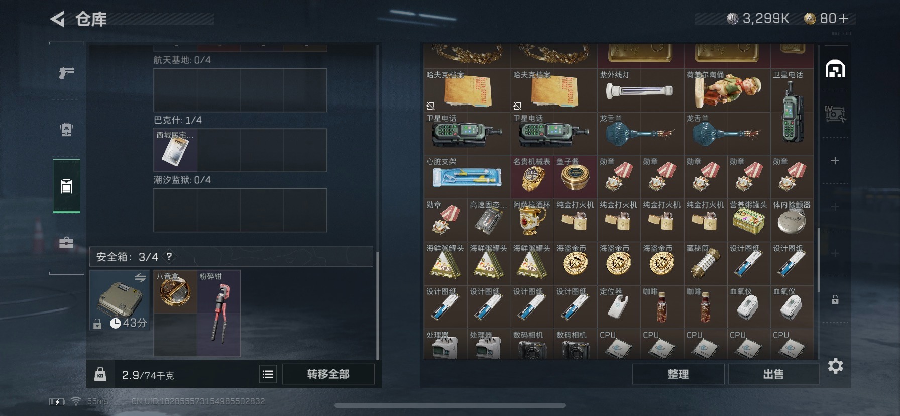 [11656620]总资产:33.3M 5传说枪械 哈夫币:3.299K 可二次 可修改实名 烽火地带段位:黄金 全面战场段位:无段位 传说武器皮肤:UZI冲锋枪-特斯拉线圈,SR-3M紧凑突击步枪-特斯拉线圈,勇士冲锋枪-能天使-午夜邮差,Vector冲锋枪-能天使-午夜邮差,M4A1突击步枪-阿米娅 史诗武器皮肤:QJB201轻机枪-Old Habits,SV-98狙击步枪-林中猎手