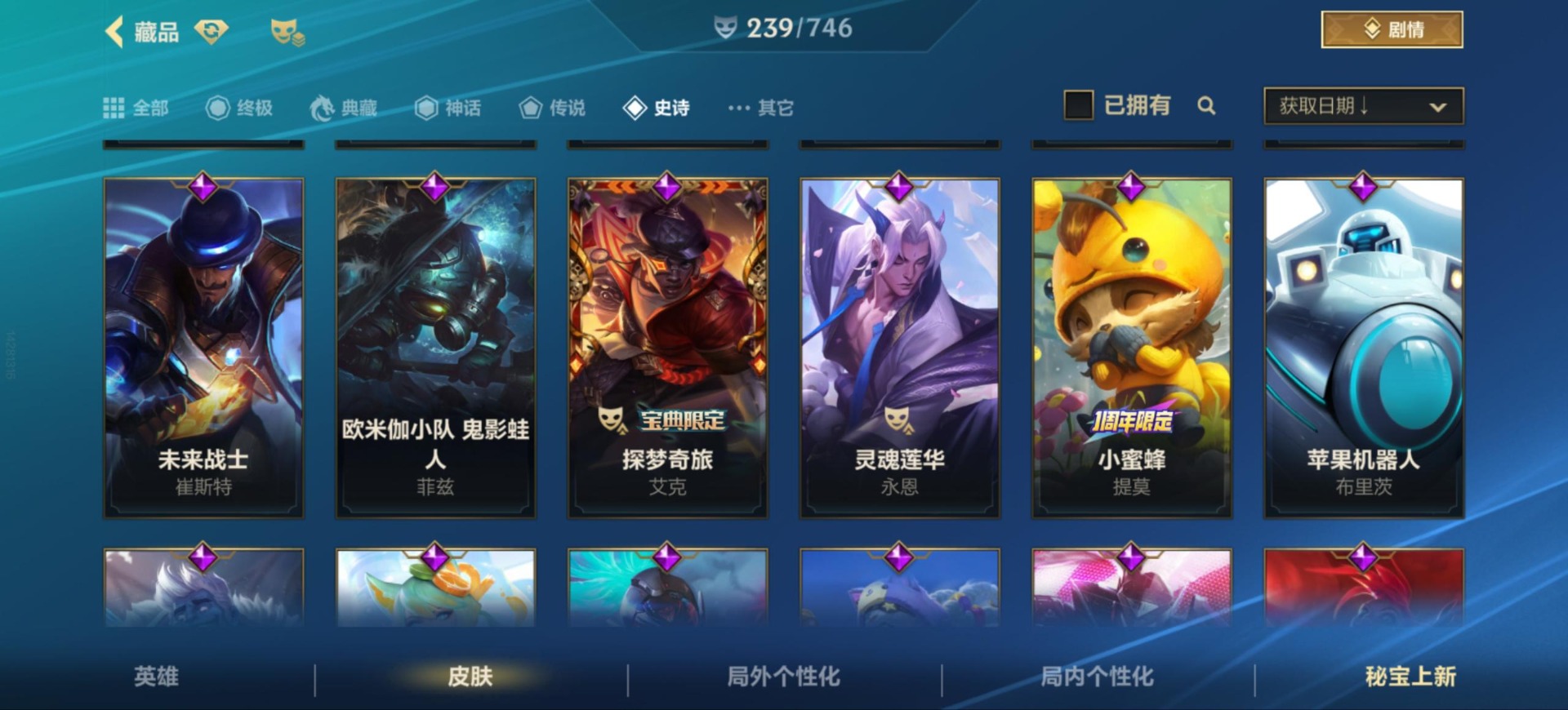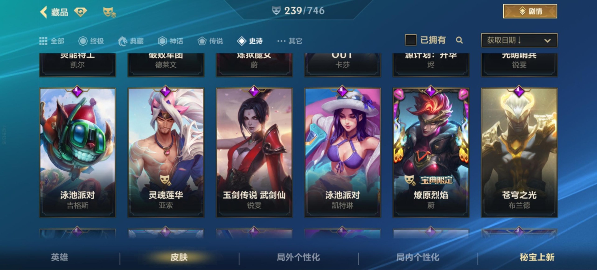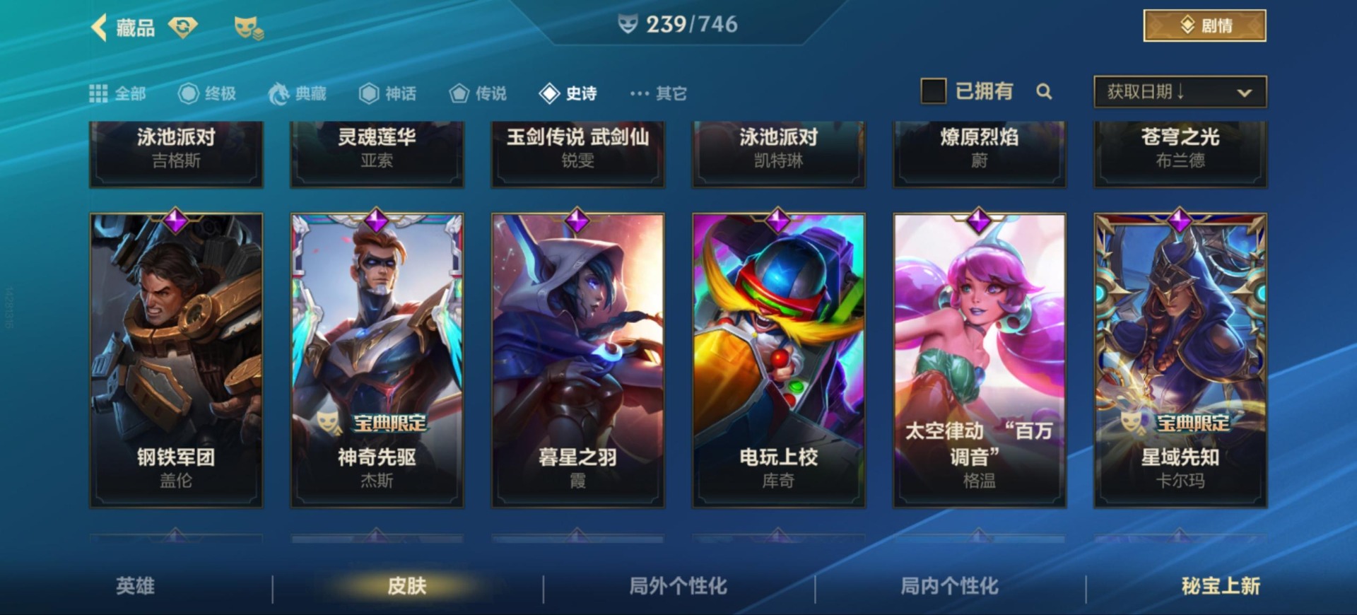 - [11679186]实名: 可修改 贵族等级: V10 英雄数: 125 皮肤数: 466 荣耀水晶: 鸣剑·曳影,全息碎影,九霄神辉 无双皮: 碎月剑心,韩信群星魔术团 珍品传说: 兔狲·蓬尾,酷洛米之心,大耳狗之梦,朽木白哉,黑崎一护 传说皮: 黄金狮子座,黄金射手座,绛天战甲,末日机甲-孙尚香,地狱火,仲夏夜之梦,零号·赤焰,时之恋人-刘备,淬星耀世,遇见胡旋,末日机甲-孙策,挚爱之约,挚爱花嫁,无双飞将,碎云,画中仙,妄想实况,艾琳觅芳踪,乘龙·问璇玑,落雪白狼,幻光神枪,祥瑞亨通,星之鸣奏,续相思,诡秘之主 限定皮: 冰锋战神,遇见飞天,李小龙,祈雪灵祝,游园惊梦,梁祝,时雨天司,引擎之心,魔法小厨娘,辉光之辰,异界灵契,天魔缭乱,神威,飞衡,天狼狩猎者,冰霜恋舞曲,逐梦之影,逐梦之光,神奇女侠,美猴王,白虎志,梅西,至尊宝,一生所爱,武陵仙君,如梦令-后羿,大圣娶亲,默契交锋-花木兰,霸王别姬-虞姬,高山流水,孙行者,猪悟能,寅虎·展翼,补天,百木心枪,玉兔公主,启示之音,匿光决锋者,无尽星芒,五谷丰年,神器·万象笔,山海·碧波行,齐天大圣,至美·化雀舞,至美·乘鲤谣,鸣野蒿,陌上桑,愿照·千秋盛,愿照·众生和,愿照·山河定,愿照·岁时盈,愿照·福禄聚,愿照·九州拓