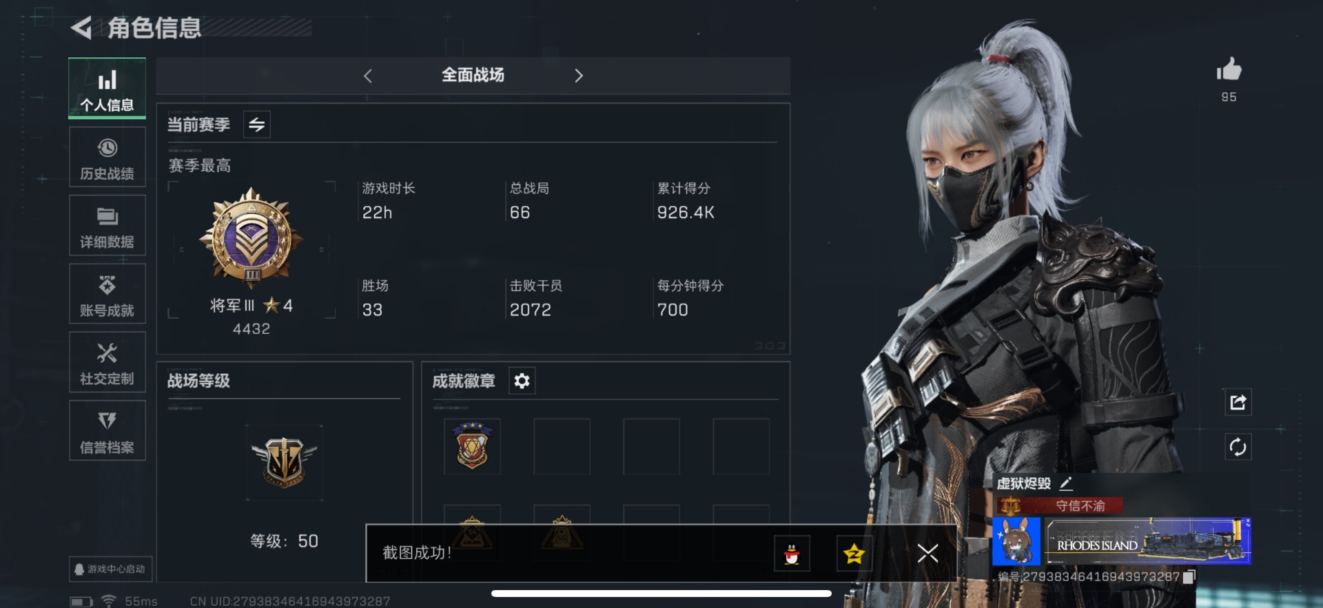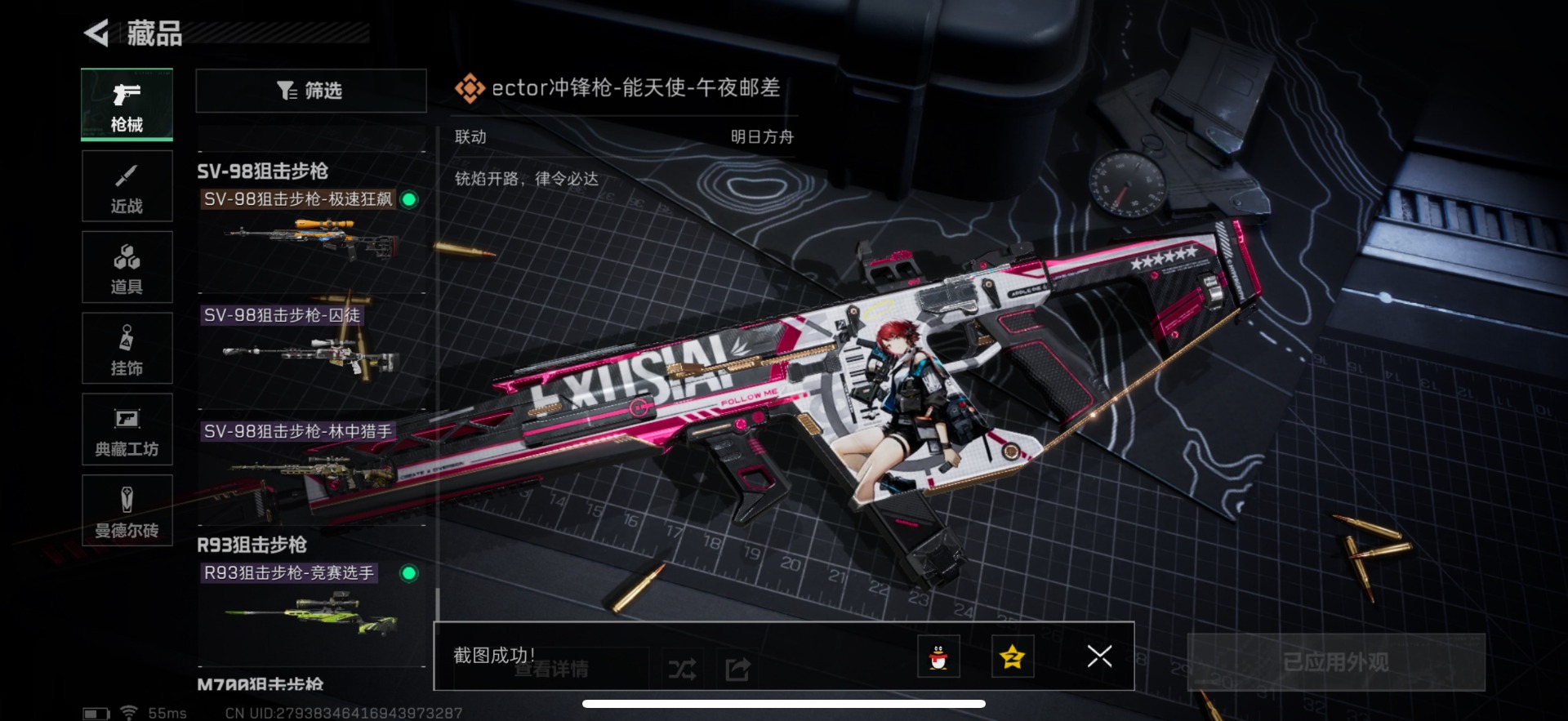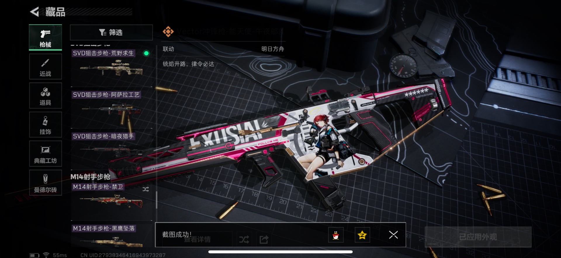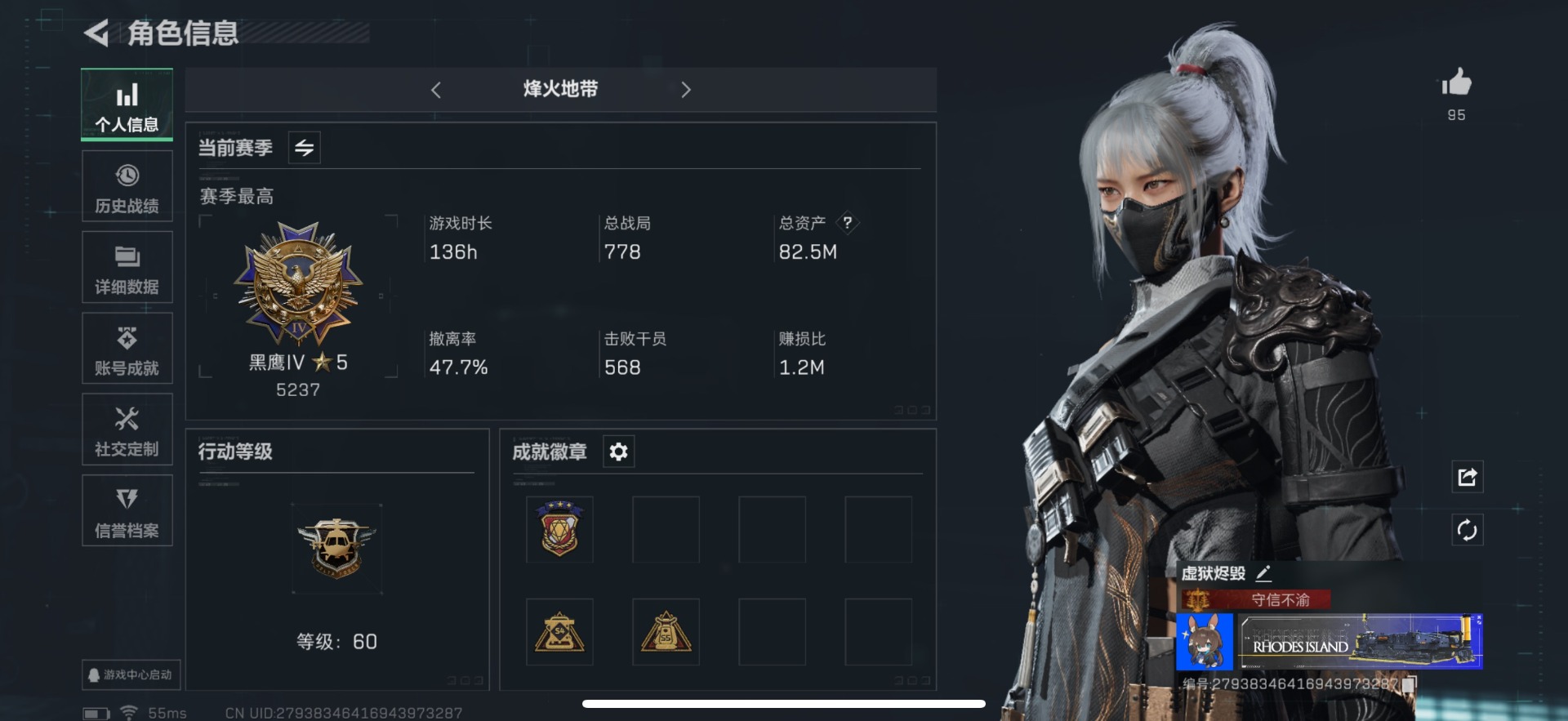 [11657291]总资产:82.5M 1干员外观 1近战传说 25传说枪械 哈夫币:1.338K 顶级安全箱(3×3)9.15号到期 可二次 可修改实名 优质装备:近战-影锋,顶级安全箱(3x3) 烽火地带段位:黑鹰 全面战场段位:将军 传说武器皮肤:SCAR-H战斗步枪-水墨云图,M1014霰弹枪-影锋,AWM狙击步枪-影锋,SCAR-H战斗步枪-铁艺苍穹,SV-98狙击步枪-极速狂飙,Ash-12战斗步枪-极速狂飙,K437突击步枪-极速狂飙,SMG45冲锋枪-骑士,G18-飞虎,UZI冲锋枪-特斯拉线圈,AWM狙击步枪-捞点薯条,腾龙突击步枪-捞点薯条,93R-捞点薯条,AK-12突击步枪-特斯拉线圈,SR-3M紧凑突击步枪-特斯拉线圈,勇士冲锋枪-能天使-午夜邮差,Vector冲锋枪-能天使-午夜邮差,复合弓-黑-天际线,725双管霰弹枪-送葬人-无题密令,M4A1突击步枪-阿米娅,CAR-15突击步枪-阿米娅,AK-12突击步枪-夜鹰,M4A1突击步枪-蚀金玫瑰,CAR-15突击步枪-黑鹰坠落 史诗武器皮肤:Vector冲锋枪-潜袭者,K416突击步枪-暗鸦,M1014霰弹枪-暗鸦,P90冲锋枪-暗鸦,K416突击步枪-潜袭者,M1014霰弹枪-潜袭者,AK-12突击步枪-原型机(典藏),QBZ95-1突击步枪-ACE,AUG突击步枪-特勤执行,M4A1突击步枪-特勤执行,Vector冲锋枪-红色彗星,PTR-32战斗步枪-ACE,SKS射手步枪-ACE,AUG突击步枪-蝮蛇,M700狙击步枪-蝮蛇,PKM通用机枪-蝮蛇,SR-25射手步枪-战场英杰,Ash-12战斗步枪-守夜人,M16A4突击步枪-竞赛选手,P90冲锋枪-暗影猎手,PKM通用机枪-守夜人,AS Val突击步枪-尖端治疗,M700狙击步枪-守夜人,SG552突击步枪-尖端治疗,SR-25射手步枪-尖端治疗,M1014霰弹枪-林中猎手,MP5冲锋枪-深海恐惧,勇士冲锋枪-深海恐惧,SG552突击步枪-深海恐惧,AKM突击步枪-林中猎手,.357左轮-幸运时刻,QJB201轻机枪-Old Habits,QCQ171冲锋枪-禁卫,SR-3M紧凑突击步枪-纷争,SV-98狙击步枪-林中猎手,PTR-32突击步枪-英雄,AS Val突击步枪-典狱官,PKM通用机枪-荒野求生,M250通用机枪-囚徒