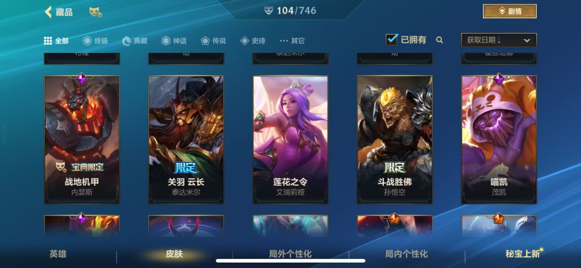 - [11598598]V6 1典藏 2珍品传说 1传说 122英雄 168皮肤 可修改实名 优质装备:拾光映像(瑶典藏),怪盗基德,器灵·落星盏 珍宝阁皮:女武神 限定皮:逐霄战戟,鸣野蒿,高山流水 史诗皮:鸭鸭历险记-刘禅,器灵·浮梦炉,化蝶舞,星界战将,谪仙醉月,龙之律动,茶境仙,撼地雄心,破空之剑,战舞者,蒙犽顽岩魄,百相守梦-百里守约,百相守梦-黄忠,紫霞仙子,黄金分割率,特工魅影,江河有灵,魅语,偶像歌手,猫狗日记-孙策,猫狗日记-大乔,节奏热浪,女仆咖啡,摇滚巨星,水果甜心,绅士熊喵,天才门将,心灵骇客,德古拉伯爵,暗隐猎兽者,幽灵船长,鬼剑武藏,暗渊魔法,心灵战警,乐园奇幻夜,舞动绿茵,诗语江南,缤纷独角兽,乘风破浪,逐浪之夏,水晶猎龙者,圣诞狂欢,圣诞恋歌,鹰眼统帅,黎明之约,赏金猎手