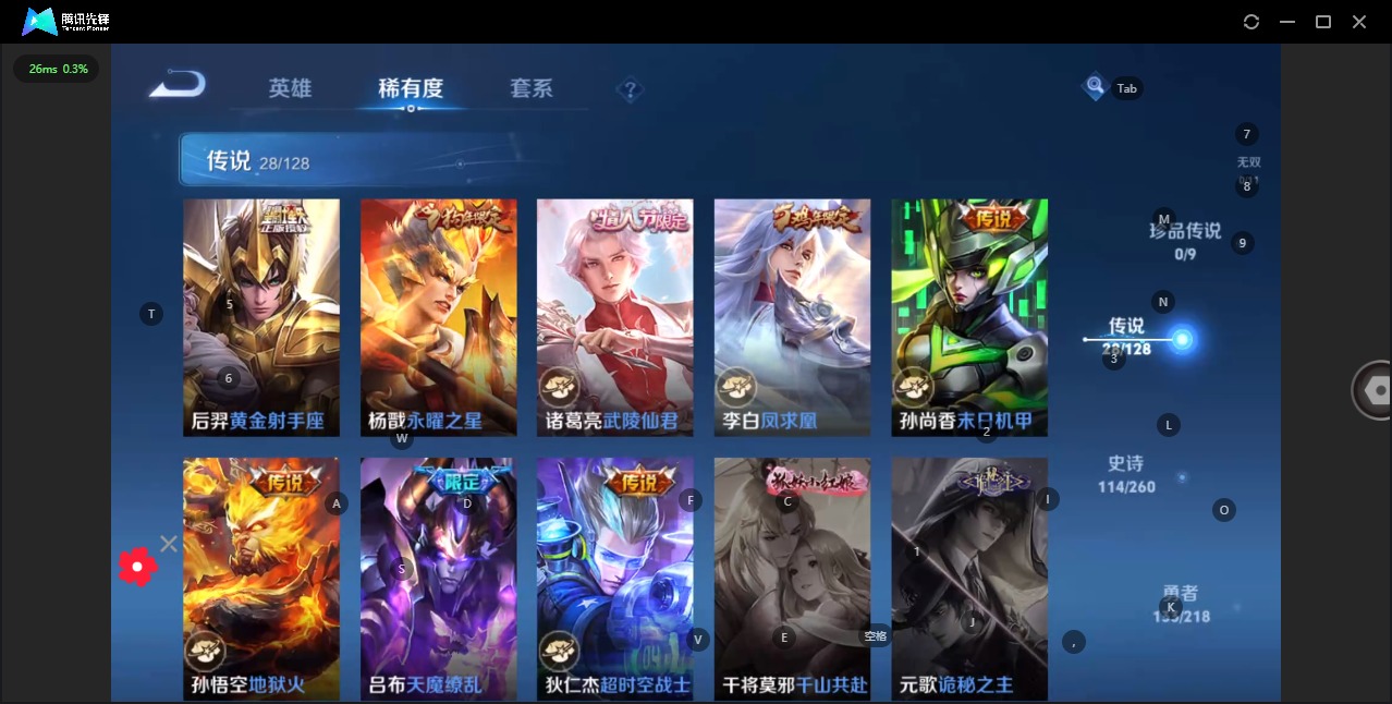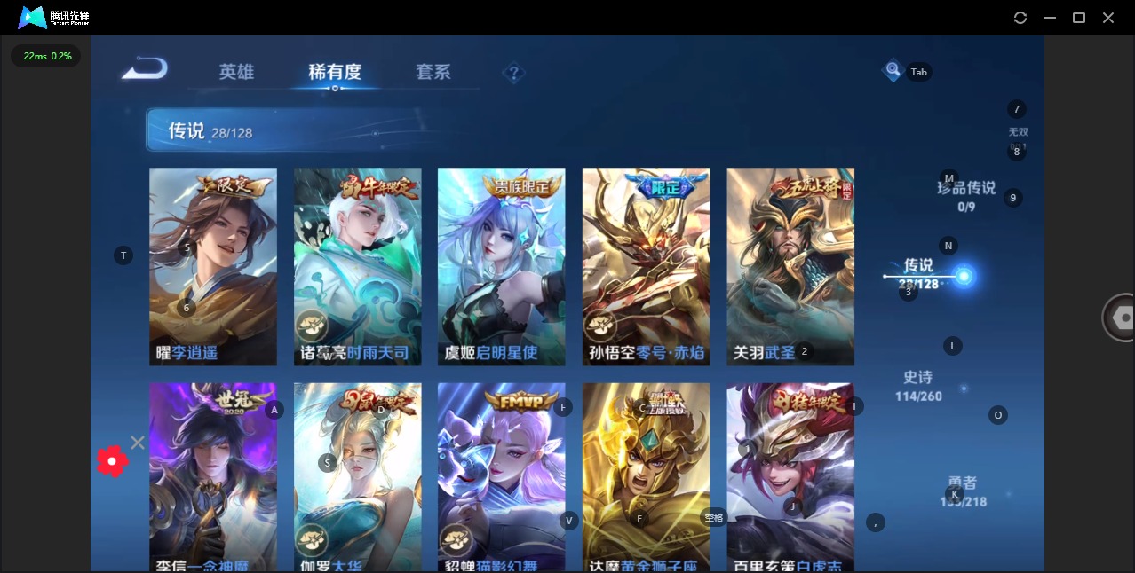 - PX_2097307-安卓Q 【可二次】 英雄数量:123 皮肤数量:116 贵族等级:贵族V5 【星传说 时之思念】传说品质4 史诗品质24云鹰飞将 幻光神枪 时之恋人男 乘龙铭钟鼎 至尊宝 神威 天才门将 迷踪丽影 功夫厨神 鬼剑武藏 魅力维加斯 皇家上将 未来纪元赵云 地狱岩魂 石田雨龙 天狼绘梦者 地狱燃心 特工魅影 曙光守护者 水晶猎龙者 心灵骇客 纤云弄巧 李小龙 狂想玩偶喵 冰雪圆舞