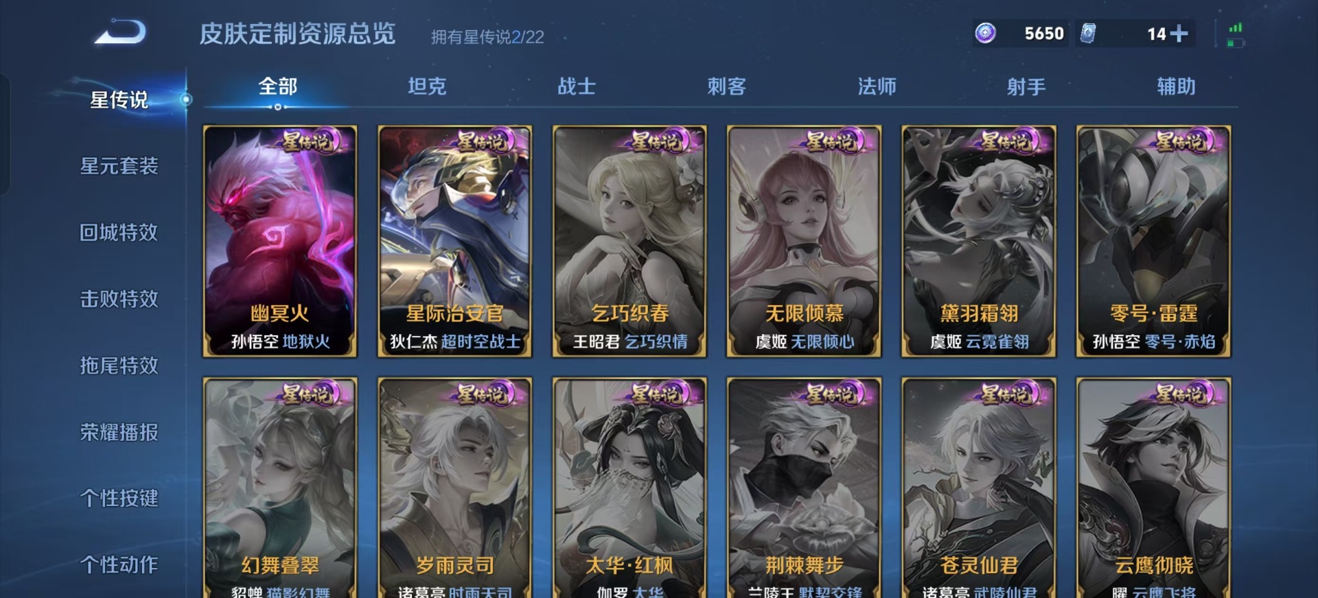 - [11823253]-可二次-V8-123英雄-244皮肤-2星传说-3000多星币能换星传说-15传说-60史诗 天魔缭乱-吕布 齐天大圣-孙悟空 冰锋战神-关羽 街头霸王-韩信
