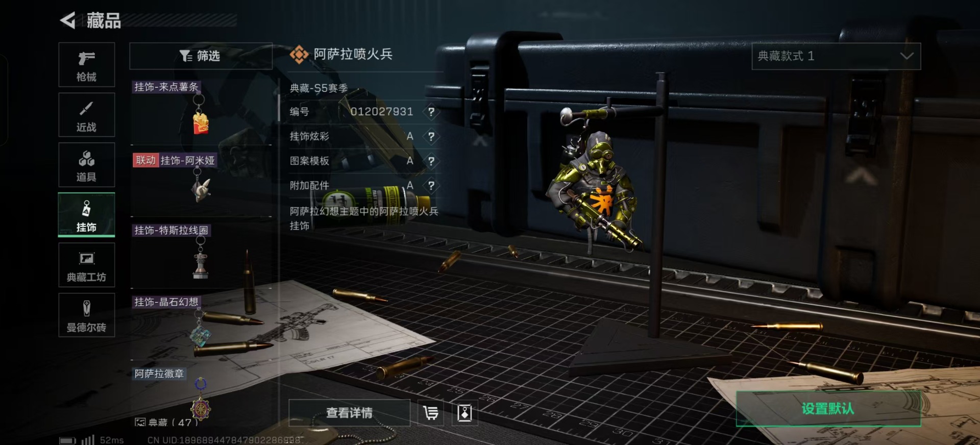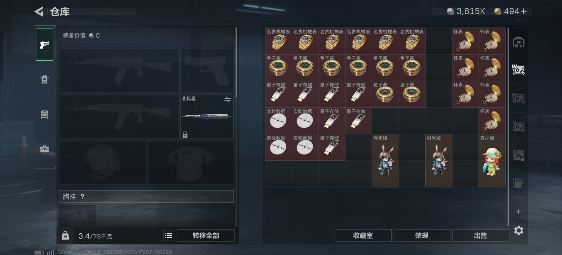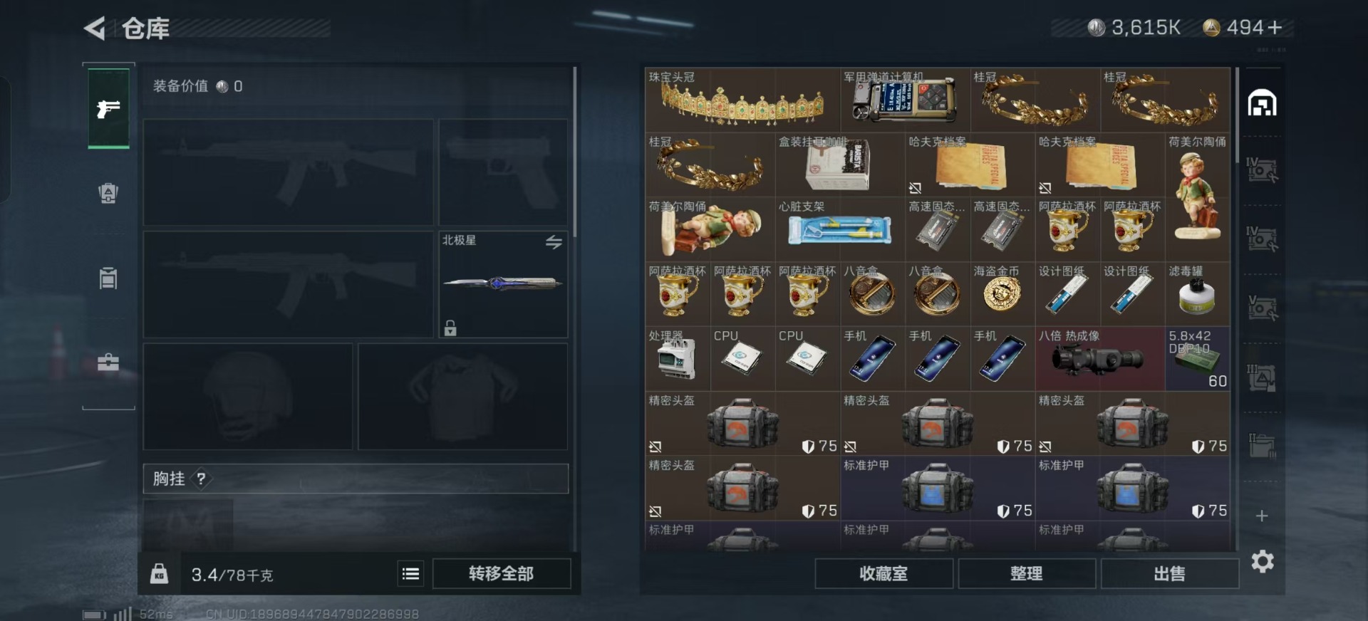 [11658002]总资产:118.5M 1干员外观 1近战传说 13传说枪械 哈夫币:3.615K 高级安全箱(9.16到期) 可二次 可修改实名 优质装备:近战-北极星 烽火地带段位:黑鹰 全面战场段位:无段位 传说武器皮肤:UZI冲锋枪-特斯拉线圈,AWM狙击步枪-捞点薯条,腾龙突击步枪-捞点薯条,93R-捞点薯条,AK-12突击步枪-特斯拉线圈,SR-3M紧凑突击步枪-特斯拉线圈,复合弓-黑-天际线,K437突击步枪-北极星,QCQ171冲锋枪-北极星,725双管霰弹枪-送葬人-无题密令,M4A1突击步枪-阿米娅,CAR-15突击步枪-阿米娅 史诗武器皮肤:QJB201轻机枪-Old Habits,MP5冲锋枪-深海恐惧,M16A4突击步枪-竞赛选手,SV-98狙击步枪-林中猎手,SCAR-H战斗步枪-囚徒,腾龙突击步枪-无垢,MP7冲锋枪-无垢,PSG-1射手步枪-无垢,SVD狙击步枪-荒野求生,SR-3M紧凑突击步枪-荒野求生,PKM通用机枪-荒野求生,S12K霰弹枪-曙光 干员外观:蜂医-送葬人·无题密令(S5)