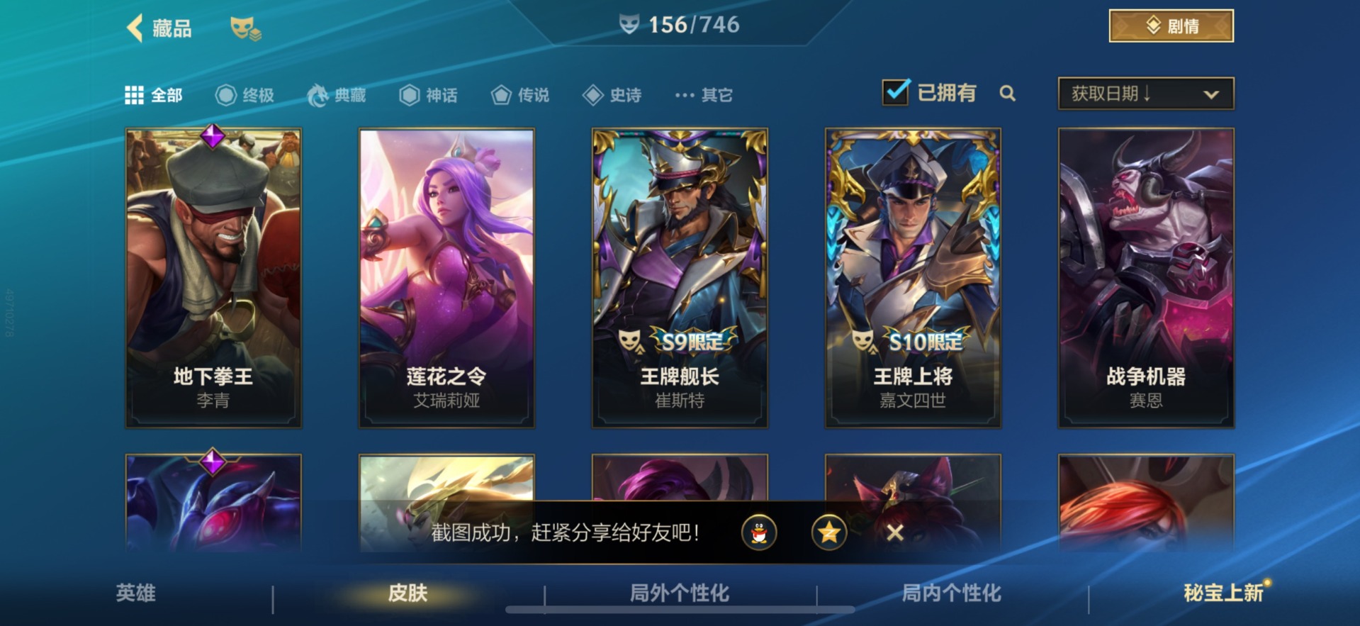 - [11867726]V7 6传说 123英雄 221皮肤 可修改实名 优质装备:绛天战甲(鸡嘴战神),一念神魔,时之恋人-刘备(电焊工),无双飞将,鹤羽星尊,涂山容容 珍宝阁皮:蔷薇恋人,玩趣恶龙 限定皮:逐霄战戟,至尊宝,傲雪梅枪,高山流水,怒海麟威,降魔,五谷丰年,青龙志(铠年限),梁祝,龙胆,烈魂,李小龙,朱雀志(守约年限),孙行者,山海·玄木吟(马可年限) 史诗皮:百相守梦-周瑜,百相守梦-黄忠,江河有灵,蒙恬荣光圣徽,偶像歌手,电玩·爆裂旋风,百相守梦(刘备),末日机甲-吕布,猫狗日记-孙策,修罗,女仆咖啡,摇滚巨星,水果甜心,天才门将,星夜王子,功夫厨神,德古拉伯爵,暗隐猎兽者,鬼剑武藏,心灵战警,地狱岩魂,纤云弄巧,逐浪之夏,水晶猎龙者,曙光守护者,箭羽风息,金属风暴,鹰眼统帅,魅力维加斯,赏金猎手,天秀·音浪,千筹问战,无心,未来纪元-赵云