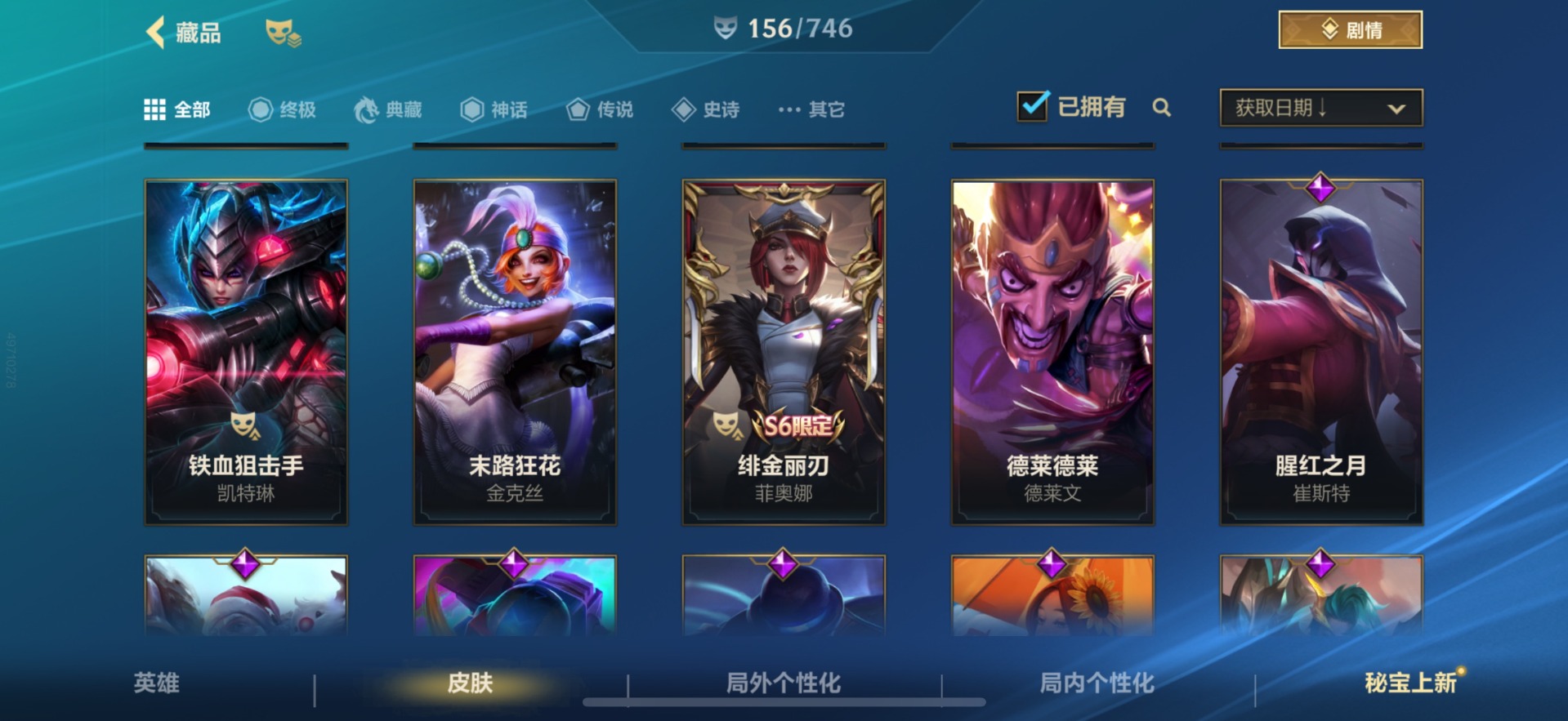 [11658035]可二次 可修改实名 段位:翡翠 7传说 67史诗 156皮肤 119英雄 翡翠 皮肤:德莱厄斯-神王,德莱厄斯-灌篮高手,德莱厄斯-热血班长,德莱厄斯-西部魔影,德莱厄斯-福牛守护者,蔚-双城之战:破枷,蔚-女警官,蔚-炼狱魔女,蔚-铁拳执事,蔚-双城之战,金克丝-末路狂花,金克丝-光耀之芒,金克丝-清剿小队,金克丝-双城之战,厄运小姐-魅惑女巫,厄运小姐-女帝,厄运小姐-破败军团,厄运小姐-西部牛仔,凯南-腥红之月,凯南-超武乾坤:电弧,凯南-超级英雄,凯南-刺客信条,菲奥娜-玉剑传说 无双,菲奥娜-绯金丽刃,菲奥娜-福牛守护者,菲奥娜-皇家守卫,卡莎-春晖仙子,卡莎-神龙尊者 玉境灵龙,卡莎-电玩女神,璐璐-邪恶女巫,璐璐-泳池派对,璐璐-光耀之灵,布隆-龙冕御盾,布隆-狮心,布隆-圣诞老人,艾希-源计划:联合,艾希-王牌司令,艾希-极地女神,崔斯特-王牌舰长,崔斯特-腥红之月,崔斯特-未来战士,菲兹-绒毛,菲兹-欧米伽小队 鬼影蛙人,菲兹-虚空海灵,吉格斯-龙冕神策,吉格斯-奥术大师,吉格斯-兔宝宝,伊芙琳-K/DA ALL OUT,伊芙琳-绯金魅影,伊芙琳-探戈灵魂,阿卡丽-超武乾坤:暗影,阿卡丽-K/DA ALL OUT,阿卡丽-银色之牙,德莱文-绯金战斧,德莱文-德莱德莱,德莱文-破败军团,娜美-玉剑传说 寒潭夭夭,娜美-绯金鲛灵,娜美-鲛妮座人,盖伦-钢铁军团,盖伦-死亡骑士,盖伦-海上霸主,亚索-腥红之月,亚索-西部牛仔,亚索-灵魂莲华,雷克顿-黯晶巨鳄,雷克顿-鳄霸,雷克顿-泳池派对,韦鲁斯-觅心射手,韦鲁斯-白色死神,韦鲁斯-暗星,阿狸-电玩女神,阿狸-风纪委员,阿狸-焰尾妖狐,艾瑞莉娅-玉剑传说 舞剑仙,艾瑞莉娅-莲花之令,艾瑞莉娅-光明哨兵,蕾欧娜-泳池派对,蕾欧娜-源计划:山,蕾欧娜-烧烤女神,库奇-冠翎飞行员,库奇-电玩上校,库奇-海牛骑手,奥莉安娜-哥特女仆,奥莉安娜-光耀之心,奥莉安娜-泳池派对,娑娜-五连摇滚键盘手,娑娜-缪斯女神,易-神龙尊者 驭风啸龙,易-暗影,奥拉夫-王牌勇将,奥拉夫-铁哥们儿,提莫-兔宝宝,提莫-熊猫,卡蜜尔-源代码,卡蜜尔-星域审判官,嘉文四世-王牌上将,嘉文四世-福牛守护者,李青-地下拳王,李青-至高之拳,加里奥-风执事,加里奥-秘旅探索者,崔丝塔娜-驯龙炮手,崔丝塔娜-娜就去看看,薇恩-猎龙勇士
