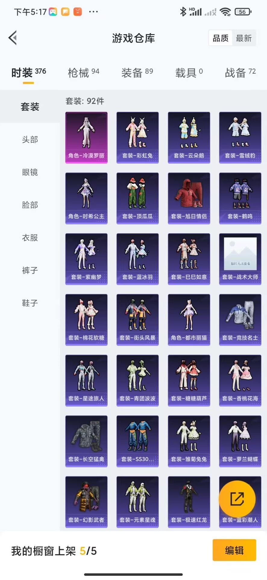 - [11603366]7粉装 1特效枪 3印记 可二次 可修改实名 安全保护中 热门装扮:宝贝奶油派,傲雪凌霜,冰川红玫,青空秋雨,美雪,小蓝,金丰海韵,胖达圆圆,激萌罗小黑,呆萌铁蟹,深海小丑鱼 稀有枪皮:Kar98K-巳巳如意 五级特效枪:五级Kar98K-巳巳如意 紫色装扮:苍岚星,紫芒星,熠彩粉晶,岑岑玉浪,和煦暖阳,田园牧歌,轻风白浪,SS22特训,萌趣咩咩,极光玫瑰,甜心亚梦,虚音幻奏,SS20特训,SS21特训,樱桃黑巧,俏皮奶喵,娇憨猪猪,摩登艾咪,人气偶像,SS30特训套装,浪漫假日,SS31特训套装,SS33特训套装,军刀雅典娜,软羊咩咩,SS17特训,蓝色运动,蓝彩潮人,都市魅力,空岛之星,竞技达人朋克,红色运动,绮丽涂鸦,缤纷果语,耀眼新星,长空猛禽,冰河战士,龙魂突击队,蝶变,香桃花海,霓虹街区,青春校园,龙的传人,飞行日记,魅力单车,鹤鸣,麻辣教官,黄色运动,战地督导,极速红龙,沙漠毒蛇,冷焰舞者,完美偶像,帅气教官,幻世战舞者,活力之心,特殊使命,特训学院,猎鹰,猛禽,破蛋小黄鸡,湖蓝色名流,滨海假日,滨海厨神,牛气满满,灼焰舞者,牛气冲天,雏菊兔兔,萝兰蝴蝶,SS29特训,冰公主,白光莹,纯真浪花,热情海星,SS28特训,听雨铃兰,燕燕于飞,鱼渊荷华,玉兔迎春,巳巳如意,海琴烟,星途旅人,青团波波,糖糖葫芦,竞技名士,绒宝小鹅,都市丽猫,街头风暴,许七安,惊鸿侠骨,SS25特训,锦衣飞扬,菲菲,SS27特训,萌趣绒叽,粉红小猪,浪漫天命,牛仔情诗,贝斯之夜,晨曦薄雾,SS26特训,春光漫游,快闪甜心,玲珑飞花,淡雅花蕊,黑夜传说,星渊小夜曲,耀粉歌者,大橘大利,纯白誓言,SS32特训服(SS32特训套装),恋语绒绒,智谋强哥,光之冒险 优质战备:萌物绒绒降落伞,千金淑猫降落伞,彩虹甜喵降落伞,旋转彩虹降落伞,暖熊萌萌降落伞,环太平洋降落伞,垂柳戏鸭降落伞,暗夜鎏金降落伞,春暖花开降落伞,蓝莓炮弹降落伞