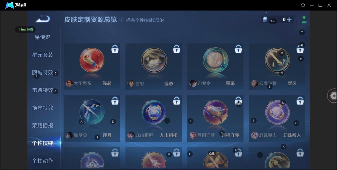 项羽霸王别姬,露娜一生所爱,裴擒虎李小龙,裴擒虎天狼狩猎者,上官婉儿梁祝,花木兰默契交锋,花木兰青春决赛季,猪八戒猪悟能,孙悟空大圣娶亲,孙悟空至尊宝,百里玄策白虎志,赵云引擎之心,百里守约朱雀志