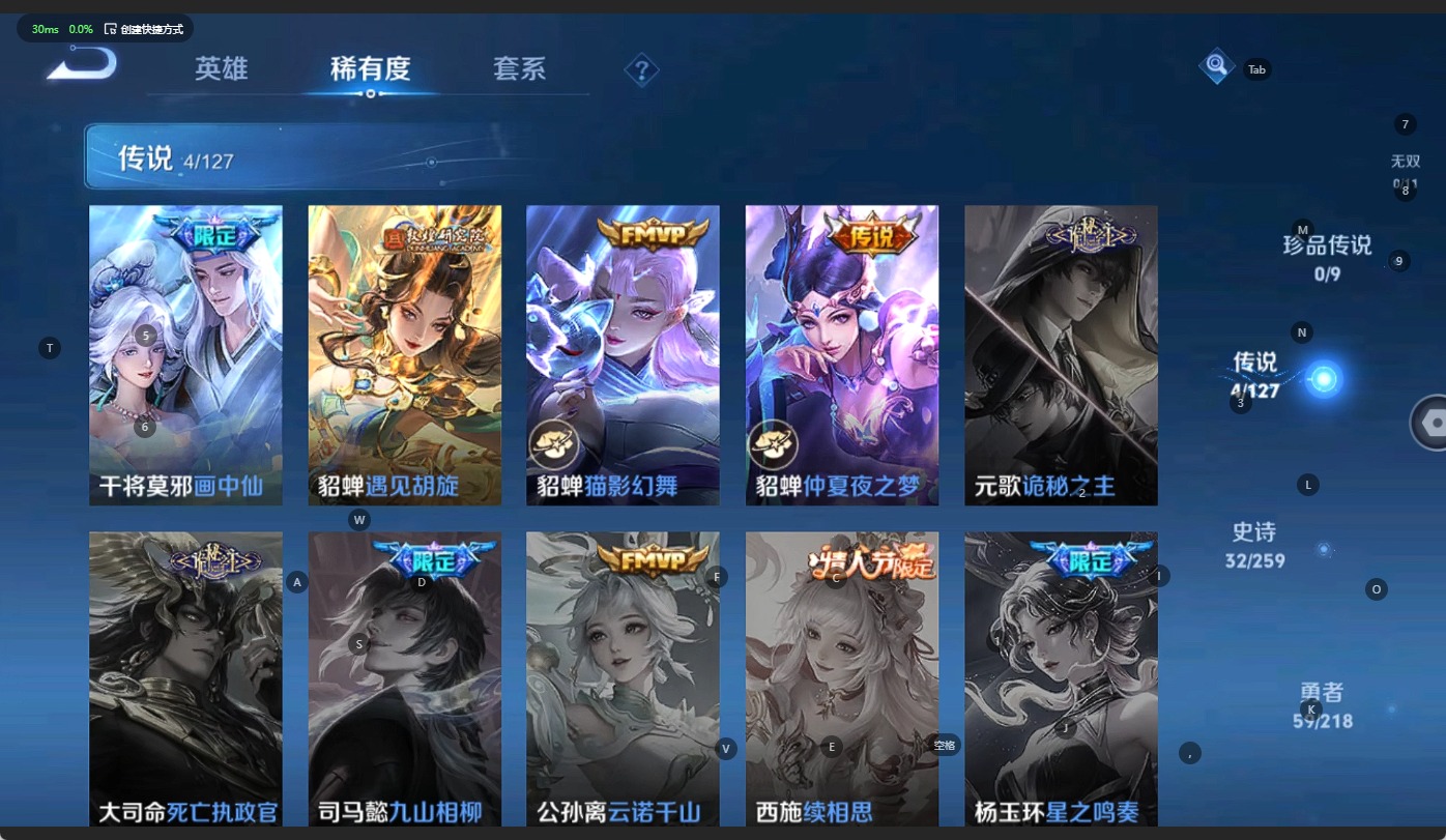 [11658665]V6 4传说 123英雄 111皮肤 可修改实名 优质装备:猫影幻舞,仲夏夜之梦(大飞蛾),遇见胡旋,画中仙 珍宝阁皮:蔷薇恋人 限定皮:山海·碧波行(瑶年限),高山流水,五谷丰年,李小龙,孙行者 史诗皮:化蝶舞,百相守梦-黄忠,遇见神鹿,特工魅影,江河有灵,节奏热浪,女仆咖啡,水果甜心,星夜王子,心灵骇客,时之奇旅-安琪拉,拒霜思,缤纷独角兽,逐浪之夏,水晶猎龙者,唤灵魅影,金属风暴,圣诞恋歌,鹰眼统帅,魅力维加斯,无心