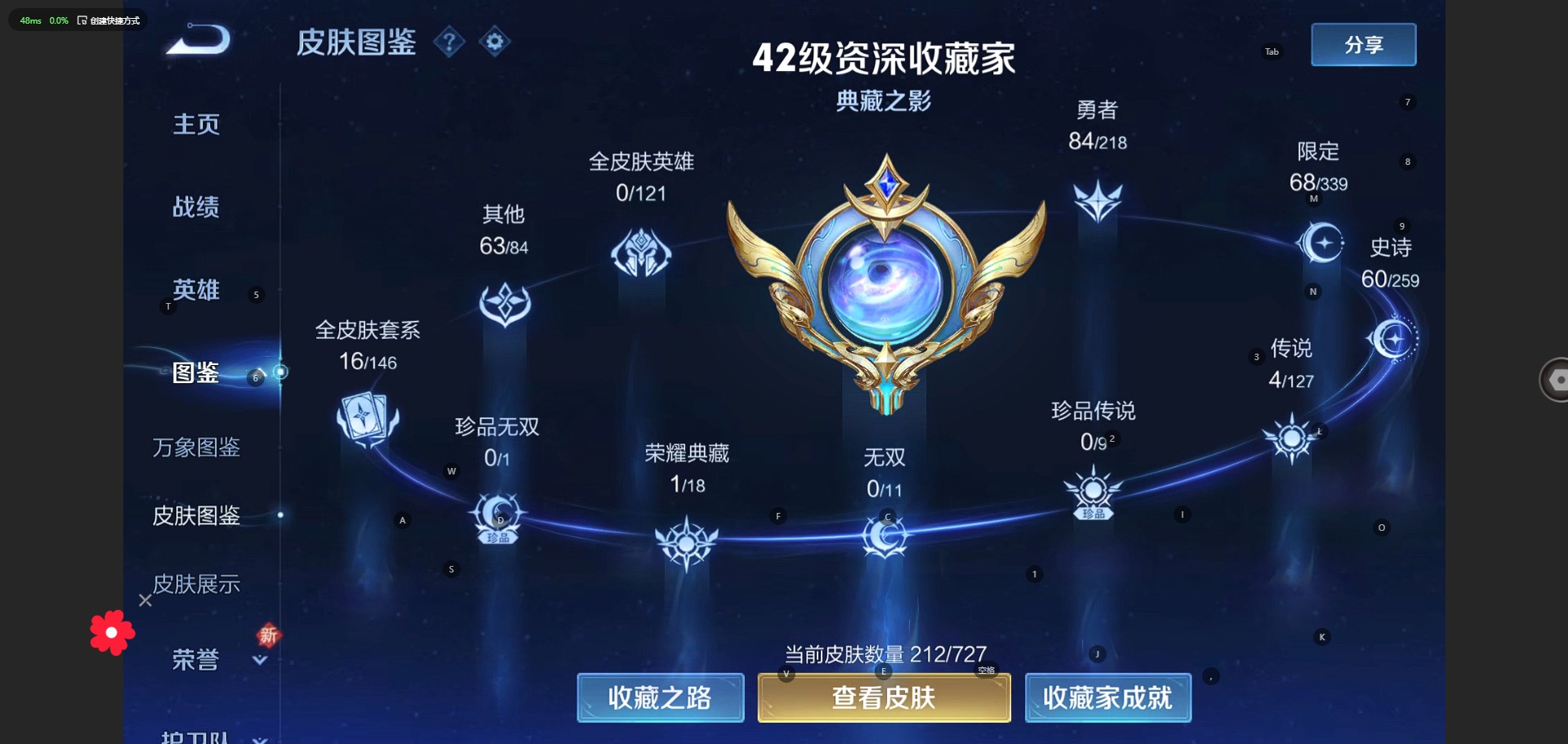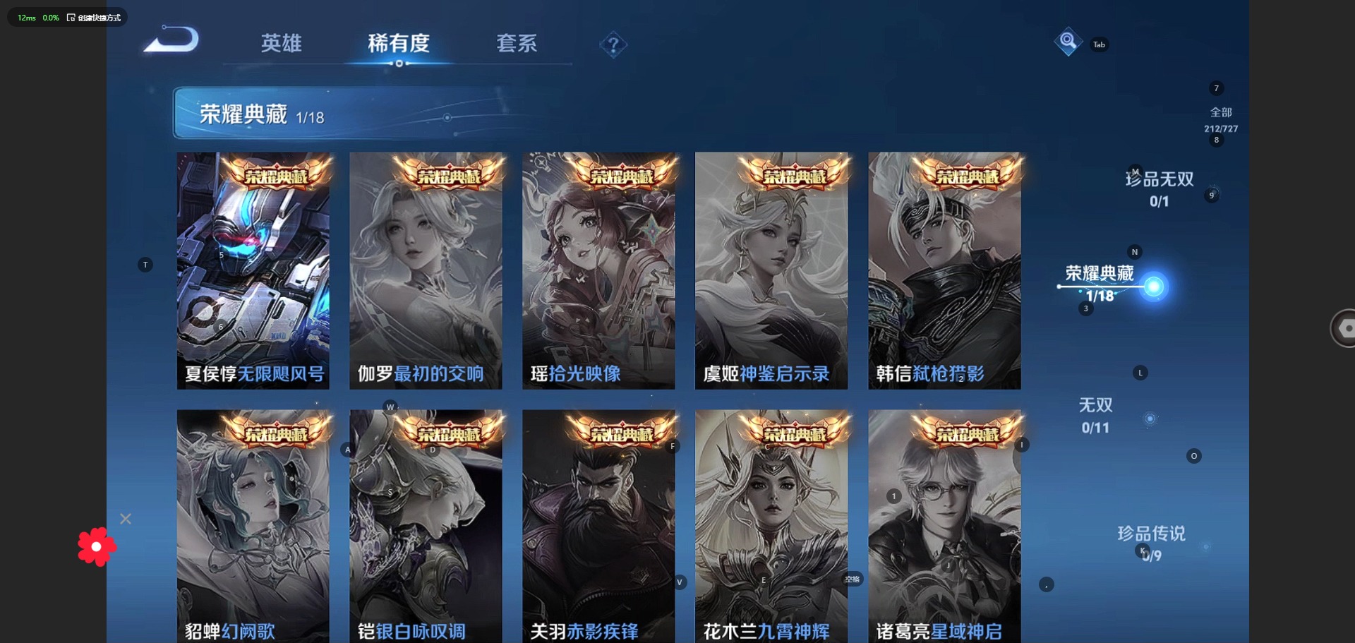 - PX_2103100-Q/无双王者/291皮肤/124英雄/2典藏/0珍品无双/1无双/0珍品传说/27传说/85史诗/8稀有英雄 【2 典藏皮肤】鸣剑·曳影 李白,九霄神辉 花木兰, 【1 无双皮肤】器灵·螭龙剑 曜, 【27 传说皮肤】鹤归松栖 云缨,启明星使 虞姬,前尘镜 娜可露露,逐花归海 澜,无双飞将 马超,李逍遥 曜,云鹰飞将 曜,齐天大圣 孙悟空,诗剑行 李白,浮生妄 夏洛特,地狱