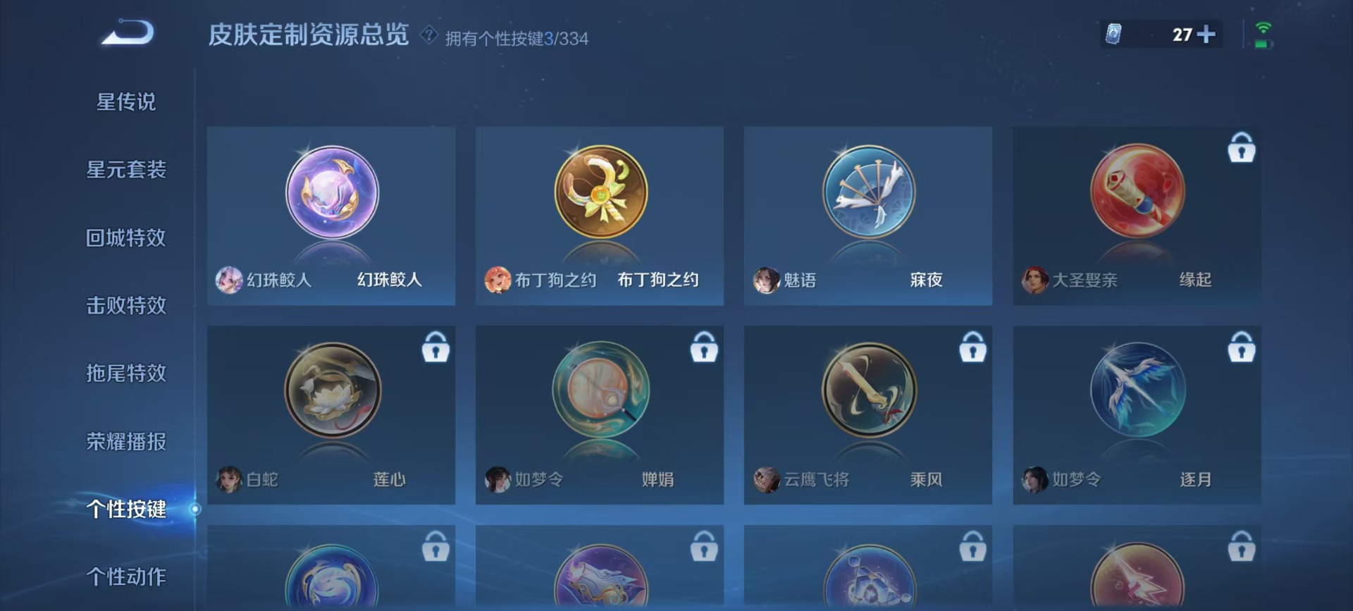 夏侯惇朔风刀,老夫子醍醐杖,沈梦溪星空之诺,沈梦溪大漠名商,盾山御銮,典韦蓝屏警告,牛魔御旌,吕布猎兽之王,裴擒虎擒涛扼浪,鲁班大师探海日志,明世隐疑决卦,鬼谷子原初探秘者,张良古海寻踪,女娲朔望之晖,桑启海盐诗旅,狄仁杰万华元夜,嬴政白昼王子,程咬金演武夺筹,李元芳银河之约,李元芳云中旅人,弈星混沌棋,米莱狄御霄,钟馗驱傩正仪,狂铁御狮