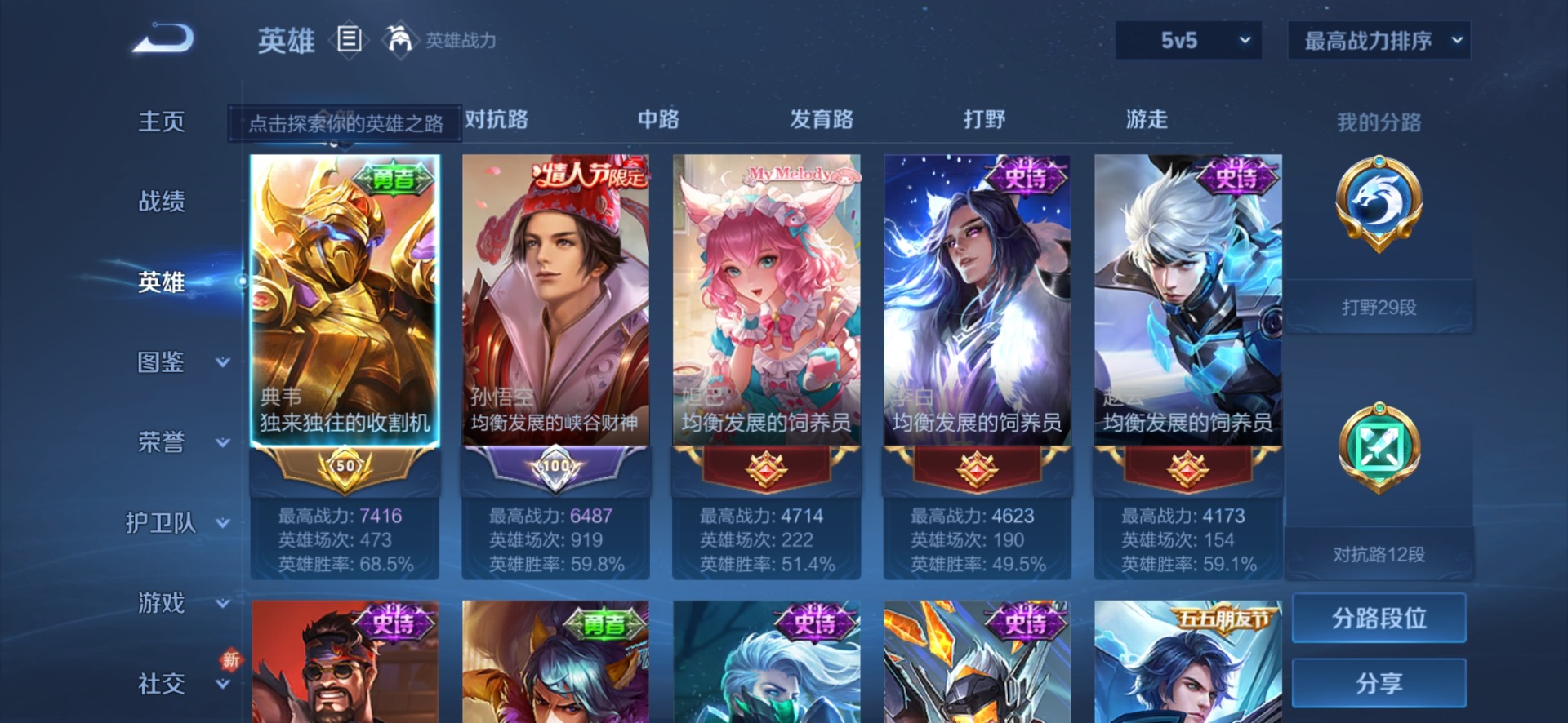 - PX_2095048-实名: 可修改 贵族等级: V5 英雄数: 63 皮肤数: 43 传说皮: 典韦战鼓燎原