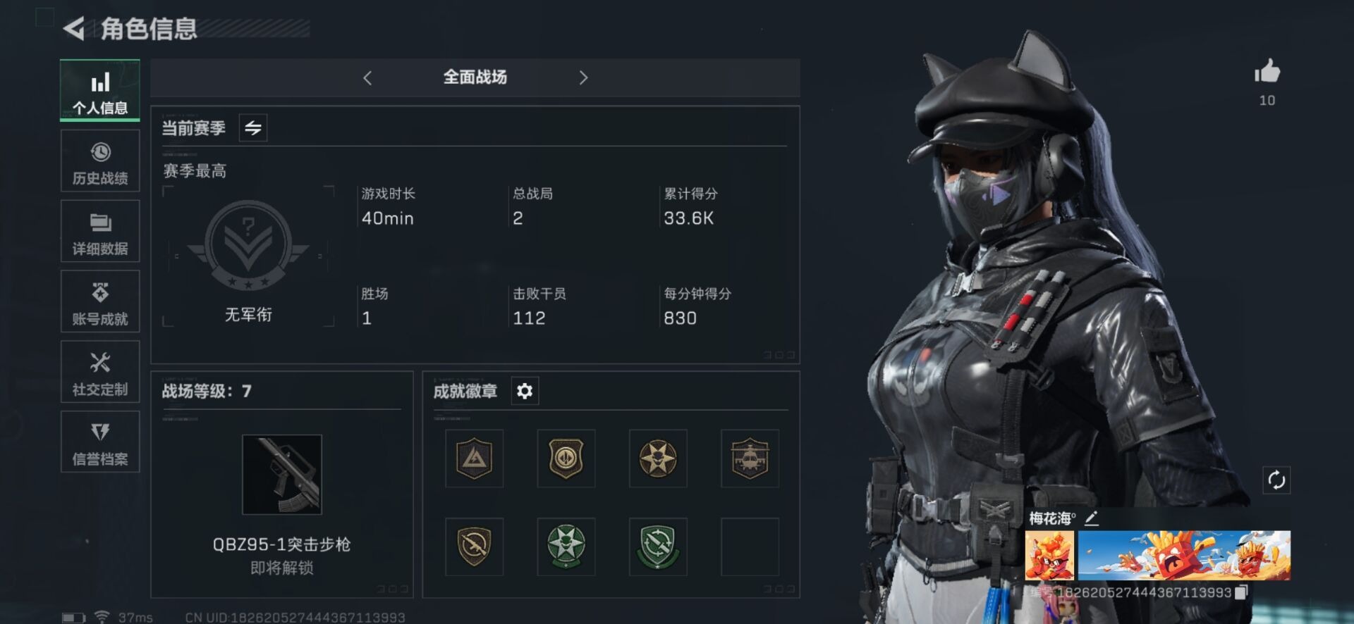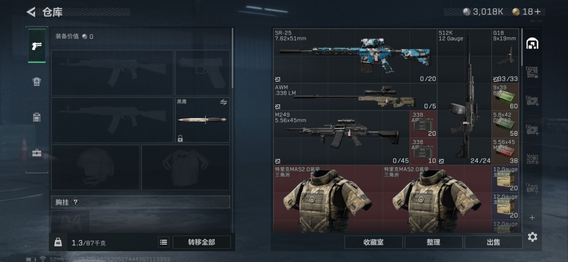 - [11627621]总资产:188.5M 2干员外观 1近战传说 20传说枪械 哈夫币:331.018K 顶级安全箱(3×3)9.15号到期 可二次 可修改实名 优质装备:近战-北极星,顶级安全箱(3x3) 烽火地带段位:黑鹰 全面战场段位:无段位 传说武器皮肤:SR-25射手步枪-水墨云图,SCAR-H战斗步枪-铁艺苍穹,AK-12突击步枪-夜鹰,SMG45冲锋枪-骑士,93R-捞点薯条,AWM狙击步枪-捞点薯条,腾龙突击步枪-捞点薯条,AK-12突击步枪-特斯拉线圈,CAR-15突击步枪-阿米娅,SR-3M紧凑突击步枪-特斯拉线圈,UZI冲锋枪-特斯拉线圈,勇士冲锋枪-能天使-午夜邮差,复合弓-黑-天际线,M4A1突击步枪-阿米娅,725双管霰弹枪-送葬人-无题密令,K437突击步枪-北极星,QCQ171冲锋枪-北极星,M7战斗步枪-维京,M4A1突击步枪-蚀金玫瑰 史诗武器皮肤:SR-3M紧凑突击步枪-英雄,QBZ95-1突击步枪-ACE,M4A1突击步枪-特勤执行,AUG突击步枪-特勤执行,Vector冲锋枪-红色彗星,PTR-32战斗步枪-ACE,SKS射手步枪-ACE,AUG突击步枪-蝮蛇,M700狙击步枪-蝮蛇,G3战斗步枪-战场英杰,Ash-12战斗步枪-守夜人,M16A4突击步枪-竞赛选手,PKM通用机枪-守夜人,AS Val突击步枪-尖端治疗,M700狙击步枪-守夜人,SG552突击步枪-尖端治疗,SR-25射手步枪-尖端治疗,PKM通用机枪-荒野求生,MP5冲锋枪-深海恐惧,勇士冲锋枪-深海恐惧,SG552突击步枪-深海恐惧,AKM突击步枪-林中猎手,SR-3M紧凑突击步枪-荒野求生,M1014霰弹枪-林中猎手,SV-98狙击步枪-林中猎手,SVD狙击步枪-荒野求生,AS Val突击步枪-典狱官,M250通用机枪-囚徒,SCAR-H战斗步枪-囚徒,腾龙突击步枪-无垢,MP7冲锋枪-无垢,PSG-1射手步枪-无垢,QBZ95-1突击步枪-曙光,UZI冲锋枪-危险实验,SCAR-H战斗步枪-危险实验,沙漠之鹰-曙光,Vector冲锋枪-阿萨拉文明,SVD狙击步枪-阿萨拉工艺,S12K霰弹枪-曙光,AS Val突击步枪-刀锋,PKM通用机枪-英雄,M700狙击步枪-竞技风,QSZ92G-风林火山 干员外观:红狼-蚀金玫瑰,露娜-黑·天际线