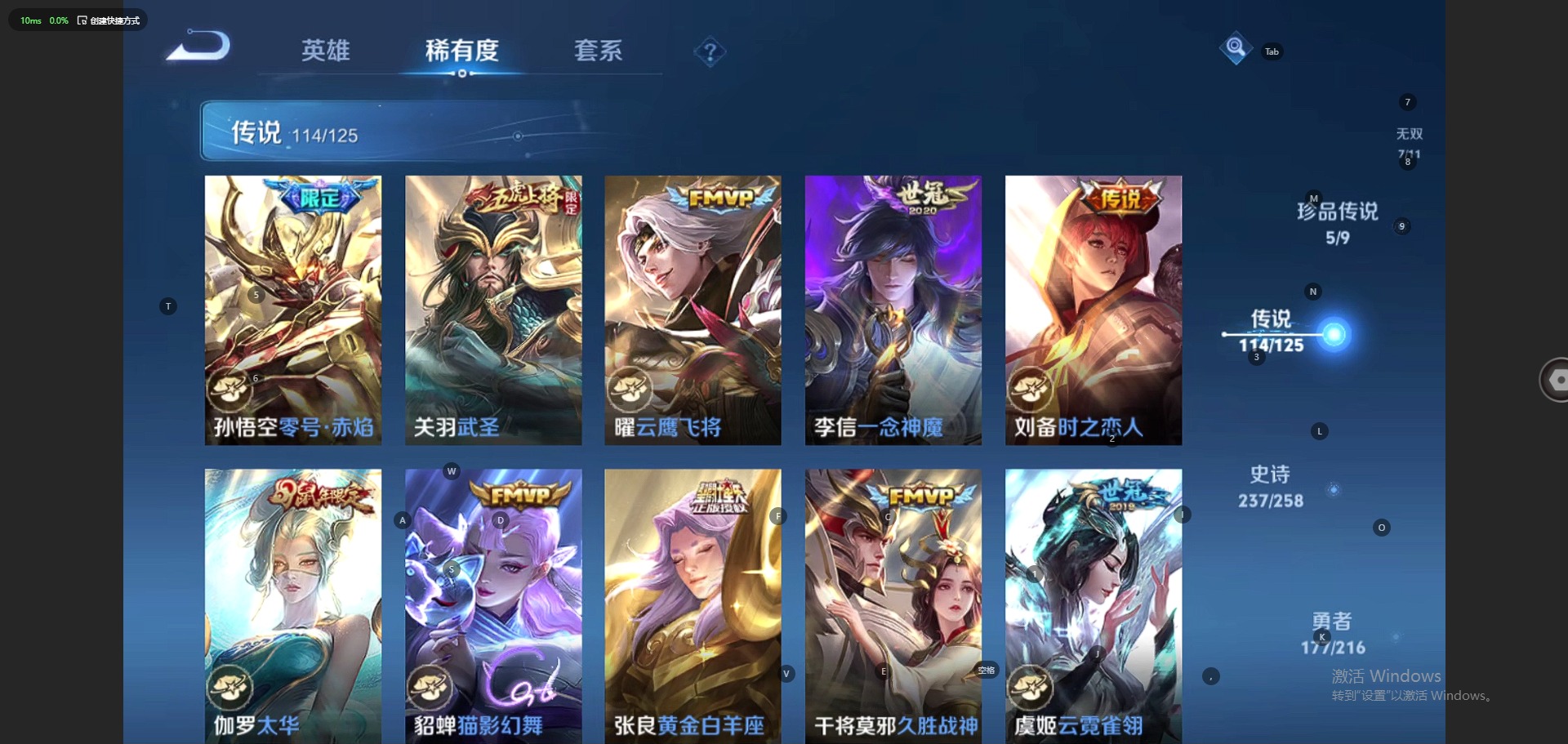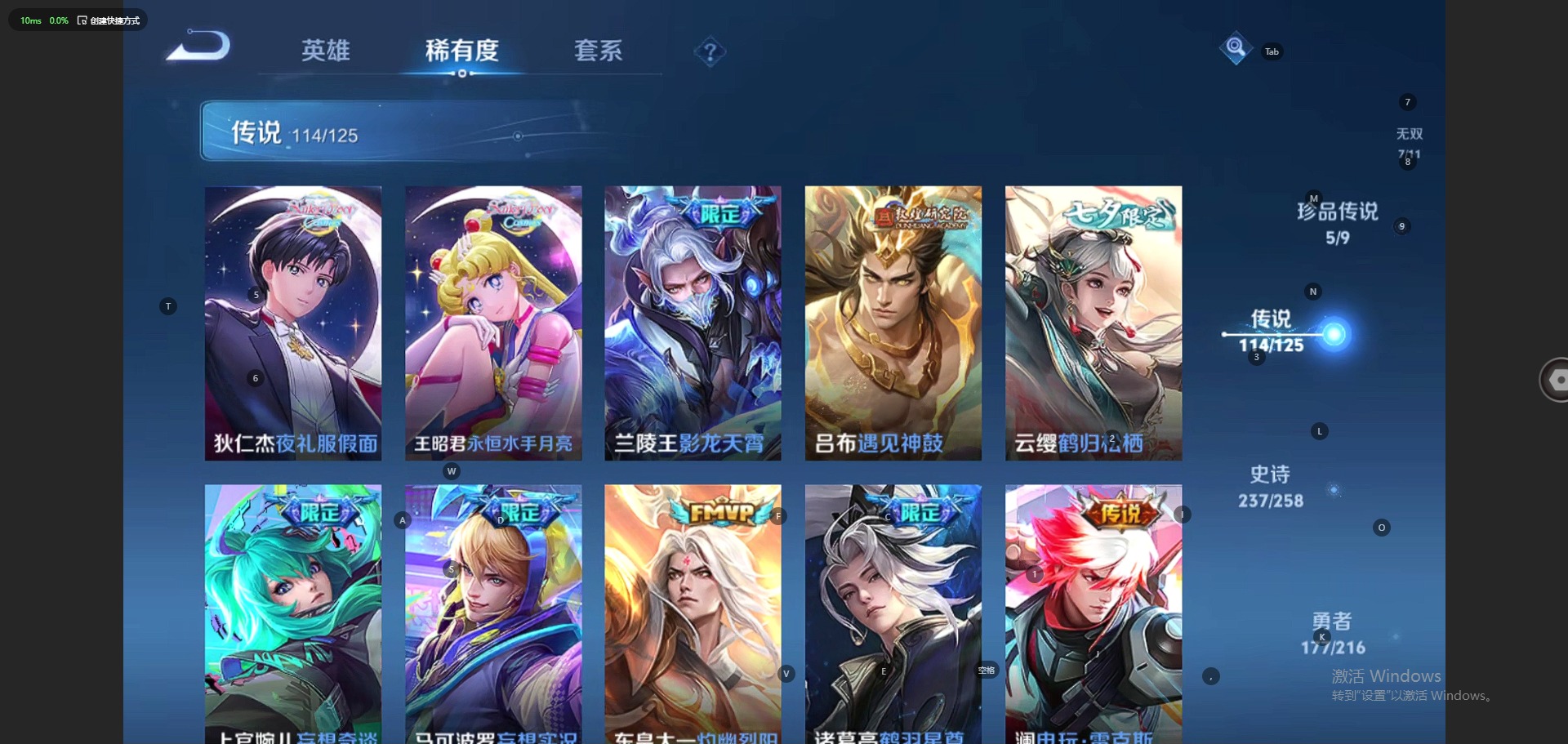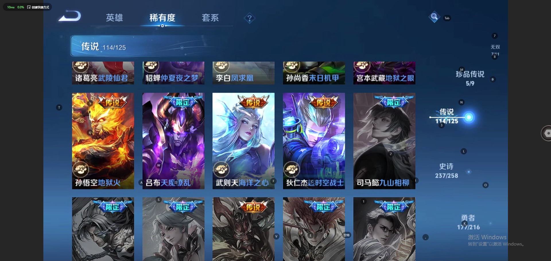 - [11625020]V7 7传说 104英雄 106皮肤 可修改实名 优质装备:久胜战神,末日机甲-孙尚香(绿蚂蚱),地狱火,仲夏夜之梦(大飞蛾),地狱之眼 限定皮:凤求凰(白切鸡),飞衡(韩信年限),梁祝,岱宗(典韦年限),李小龙,永曜之星,辉光之辰 史诗皮:石田雨龙,紫霞仙子,苍穹之光,电玩小子(小书包),白龙吟,黄金分割率,特工魅影,猫狗日记-孙策,节奏热浪,心灵骇客,暗隐猎兽者,缤纷独角兽,乘风破浪,逐浪之夏,水晶猎龙者,曙光守护者,圣诞恋歌,鹰眼统帅,魅力维加斯,未来纪元-赵云