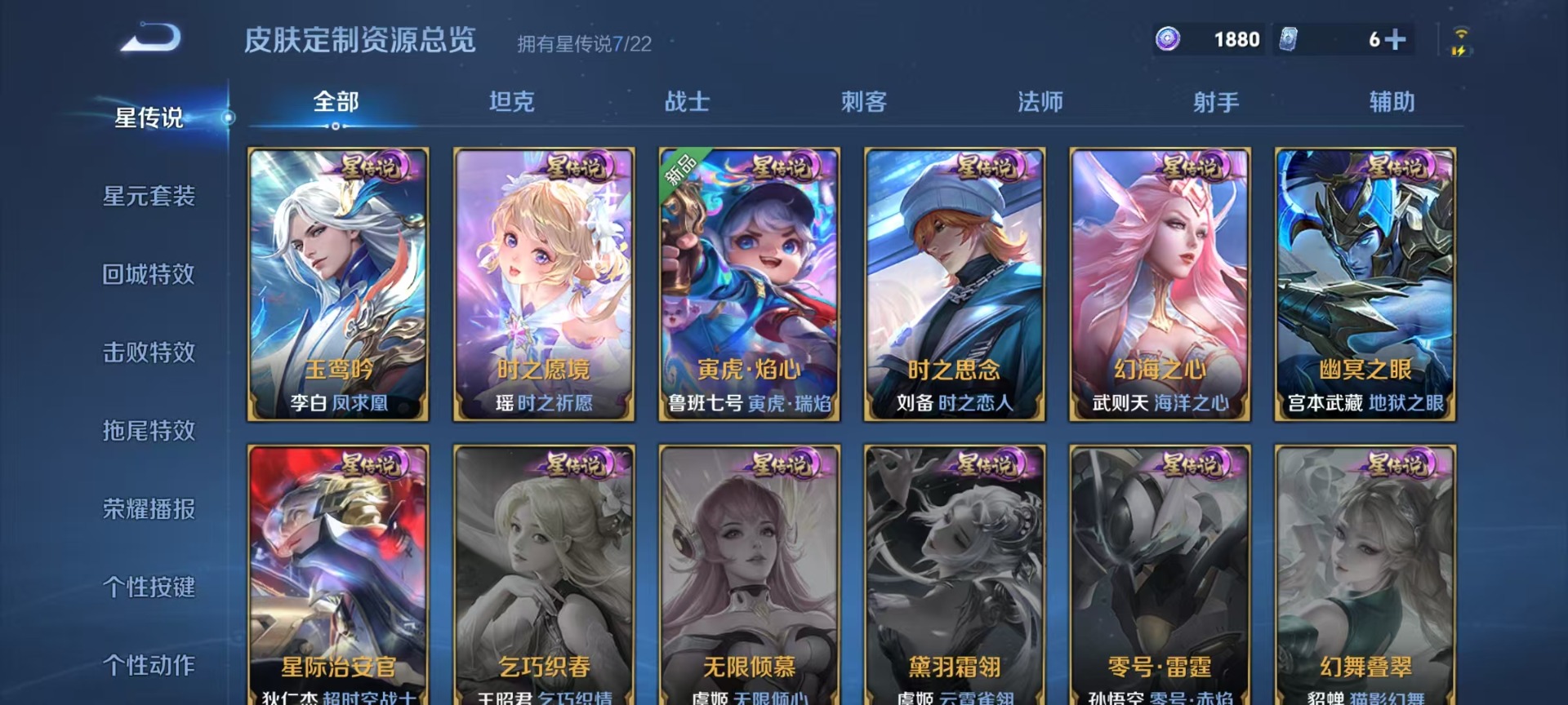 - PX_2086722-62 安卓QQ/至尊星耀/219皮肤/124英雄/1典藏/0珍品无双/0无双/0珍品传说/13传说/59史诗/8稀有英雄 【1 典藏皮肤】神鉴启示录 虞姬, 【13 传说皮肤】海洋之心 武则天,霜月吟 露娜,天魔缭乱 吕布,淬星耀世 赵云,音你闪耀 孙尚香,愿照·九州拓 澜,群星魔术团 云中君,愿照·众生和 妲己,愿照·福禄聚 蔡文姬,愿照·山河定 司空震,愿照·岁时盈 虞姬