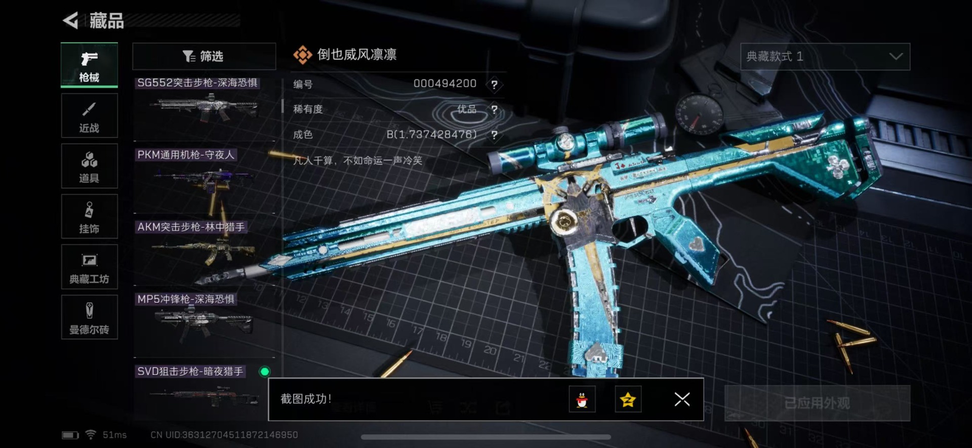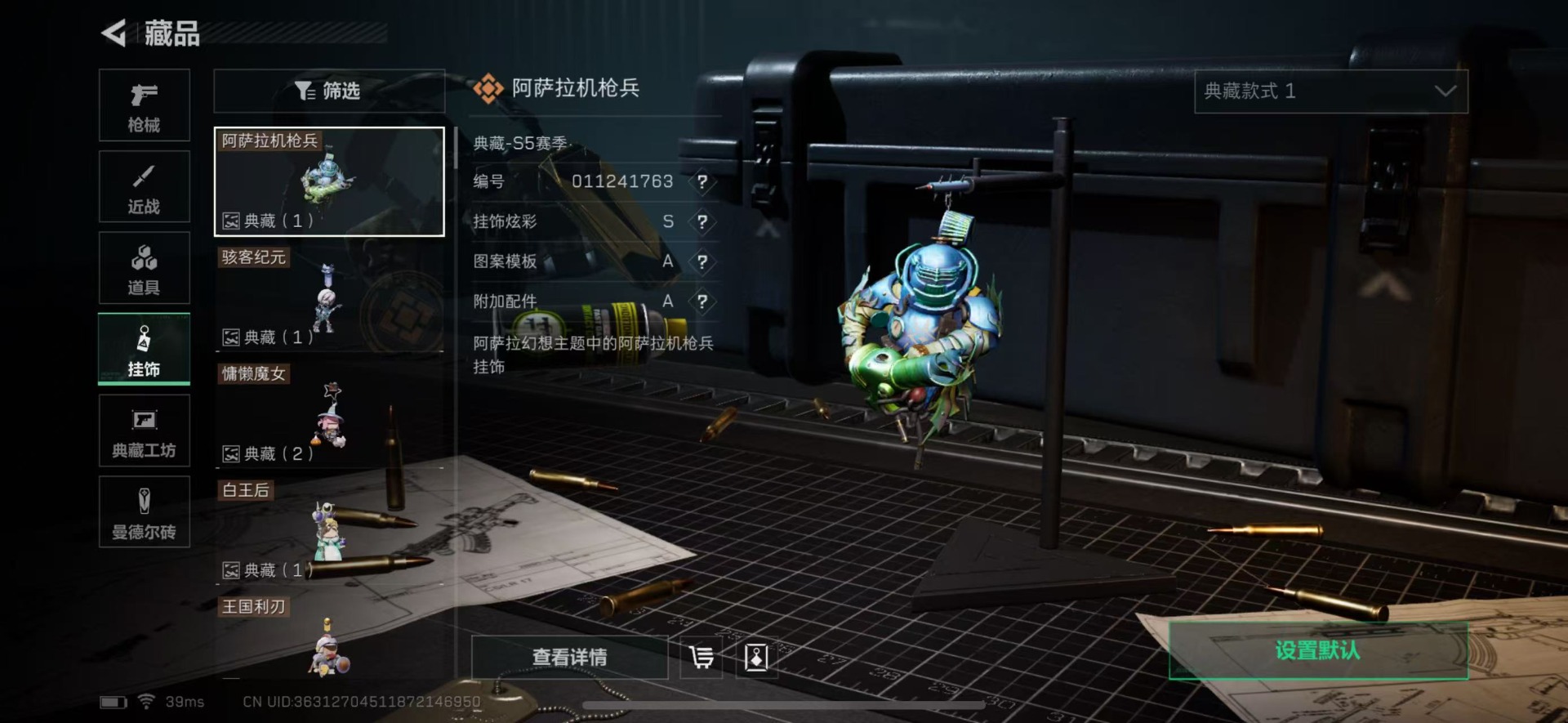 - PX_2104283-?/枪械2/装备47/战备40/王牌印记2/热力值11540/四级AKS-74U-星穹咏叹调/五级Kar98K-巳巳如意/粉装-星穹咏叹调/套装-圣穹绘梦/套装-粉恋花/套装-紫幽梦/套装-蓝冰羽/套装-星影赞美诗/套装-云朵鹅/套装-雪绒豹/AKS-74U-星穹咏叹调/Kar98K-巳巳如意/M416-蓝色火焰/QBZ-神秘黑猫/M762-彩虹符号/M762-云朵鹅/G36