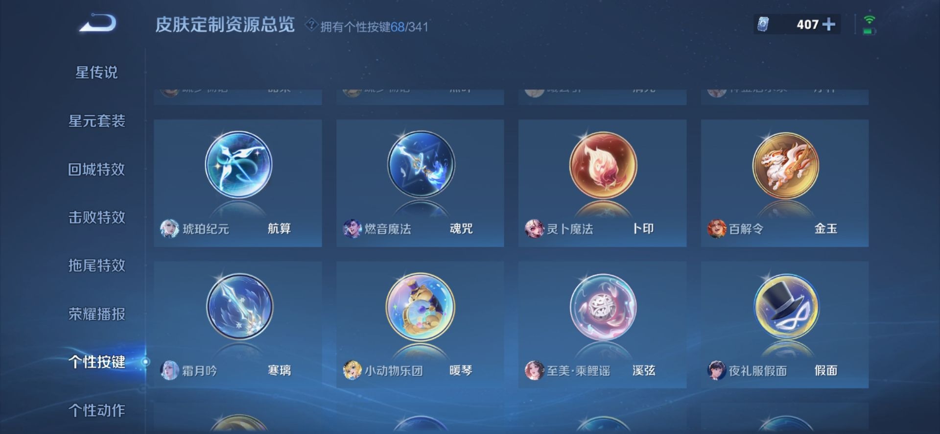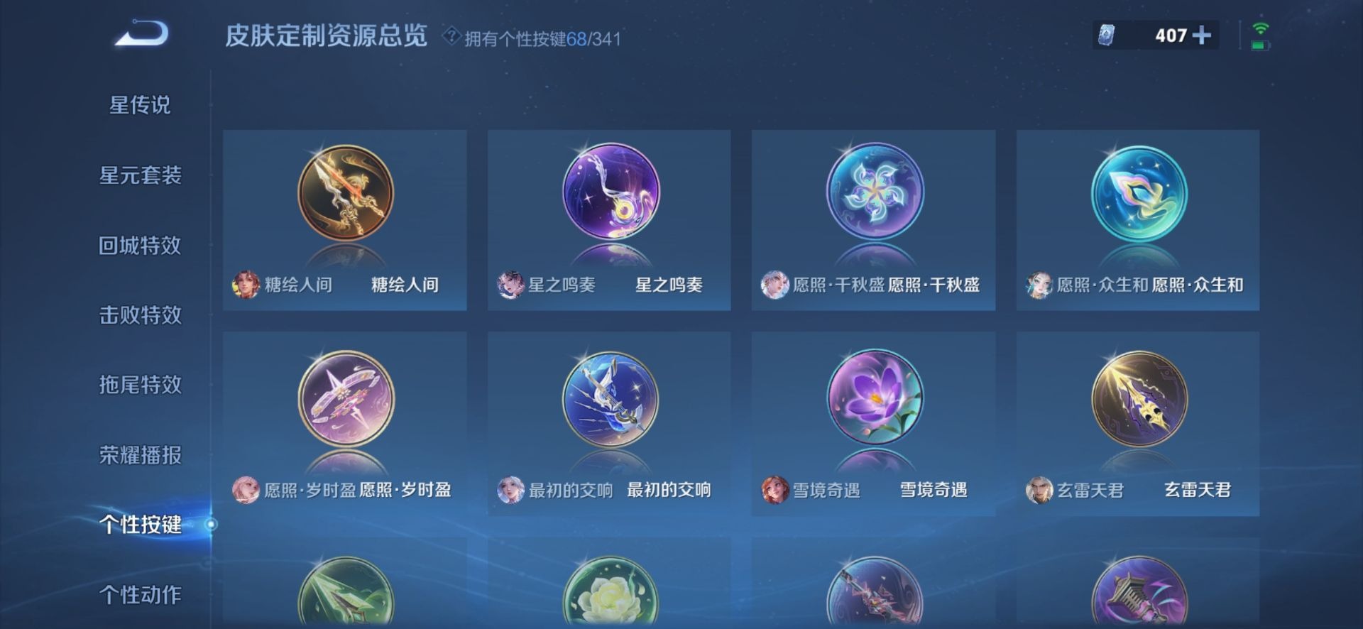 金蝉唐三藏,夏侯惇霜北刀,牛魔奔雷神使,露娜启示之音,露娜一生所爱,庄周云端筑梦师,诸葛亮时雨天司,司空震愿照·山河定,裴擒虎李小龙,上官婉儿梁祝,上官婉儿神器·万象笔,上官婉儿天狼绘梦者,花木兰默契交锋,马可波罗逐梦之星,孙悟空大圣娶亲,孙悟空至尊宝,韩信傲雪梅枪,墨子降魔,澜愿照·九州拓,虞姬愿照·岁时盈,嫦娥如梦令,王昭君凤凰于飞,王昭君映山客,大乔白鹤梁神女,哪吒逐梦之翼,铠青龙志,伽罗天狼溯光者,赵云百木心枪,孙膑天狼运算者,吕布御风骁将,后羿如梦令,后羿辉光之辰,兰陵王默契交锋,兰陵王影龙天霄,安琪拉魔法小厨娘,艾琳陌上桑,西施至美·乘鲤谣,桑启鸣野蒿,女娲愿照·千秋盛,百里玄策白虎志,赵云引擎之心,妲己时之彼端,妲己时之奇旅,妲己愿照·众生和,蔡文姬愿照·福禄聚,瑶山海·碧波行,娜可露露前尘镜,关羽冰锋战神