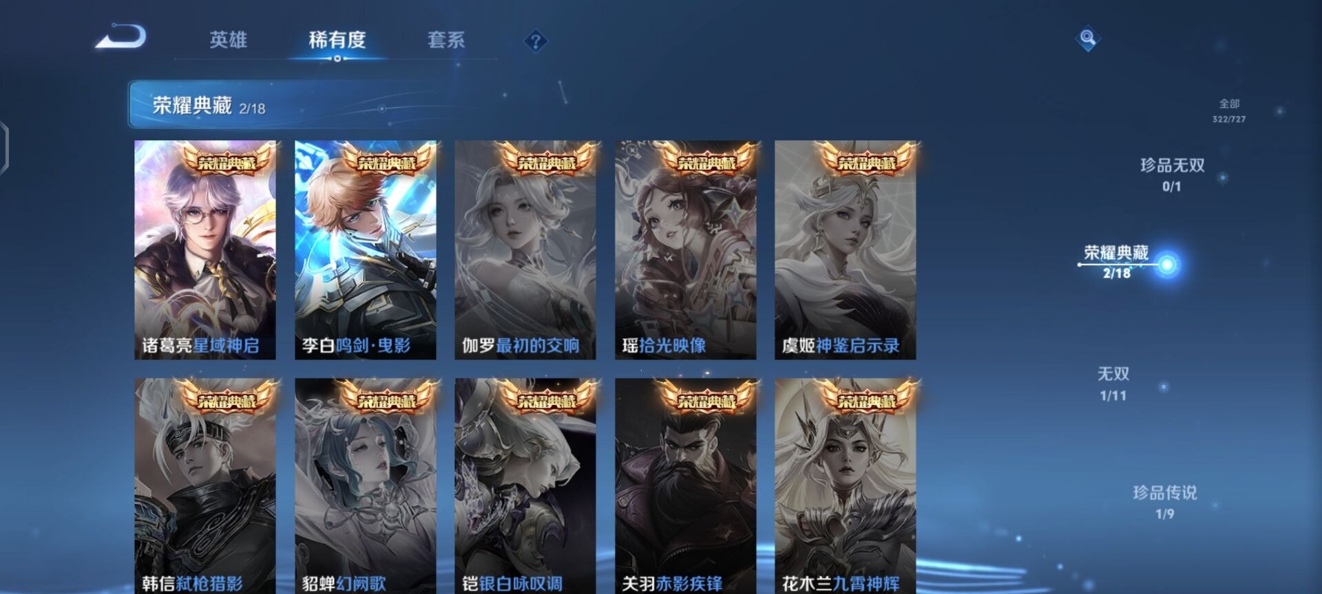[11676148]V9 2典藏 1无双 1珍品传说 16传说 125英雄 322皮肤 可修改实名 优质装备:鸣剑·曳影,星域神启(倪克斯贼亮),碎月剑心(李白无双),怪盗基德,黄金射手座,冠军飞将,炽阳神光,地狱火,地狱之眼,挚爱之约 传说皮:乘龙·问璇玑(孙尚香年限),乘龙·铭钟鼎(赵云年限),貂蝉曦玄引,幻光神枪 珍宝阁皮:蔷薇恋人,女武神,玩趣恶龙 限定皮:愿照·九州拓(澜年限),愿照·众生和(妲己年限),鸣野蒿,前尘镜,绯月行,神威(电光马子),遇见飞天,高山流水,五谷丰年,青龙志(铠年限),游园惊梦,梁祝,天狼狩猎者,烈魂,天狼溯光者,李小龙,玄武志(苏烈年限),辉光之辰,圣诞老人,默契交锋-花木兰 史诗皮:鸭鸭历险记-刘禅,器灵·浮梦炉,化蝶舞,星界战将,龙之律动,石田雨龙,百相守梦-周瑜,茶境仙,蔬乡物语(鲁班七号),琥珀纪元伽罗,百相守梦-百里守约,紫霞仙子,电玩小子(小书包),黄金分割率,特工魅影,千年之狐,百相守梦(刘备),匿光侦查者,百解令(蒙犽),高渐离燃音魔法,偶像歌手,龙骑士(小龙虾),暗夜猫娘,魅语,无限星赏官,冰冠公主,末日机甲-吕布,猫狗日记-孙策,猫狗日记-大乔,乱世虎臣,节奏热浪,修罗,女仆咖啡,摇滚巨星,水果甜心,绅士熊喵,天才门将,星夜王子,心灵骇客,功夫厨神,德古拉伯爵,暗隐猎兽者,幽灵船长,鬼剑武藏,心灵战警,舞动绿茵,地狱岩魂,纤云弄巧,拒霜思,缤纷独角兽,乘风破浪,逐浪之夏,月团寄思,水晶猎龙者,曙光守护者,金属风暴,圣诞狂欢,圣诞恋歌,鹰眼统帅,王者之锤,暗夜贵公子,魅力维加斯,黎明之约,无心,未来纪元-赵云
