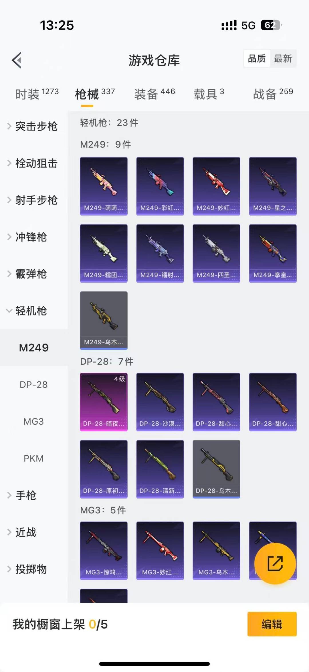 AKM-梦之光华,SCAR-L-梦幻火箭,M416-五爪金龙,M762-甜蜜誓约,Kar98K-巳巳如意,AWM-焰龙焚天,UMP45-相思残雪,DP-28-暗夜鎏金