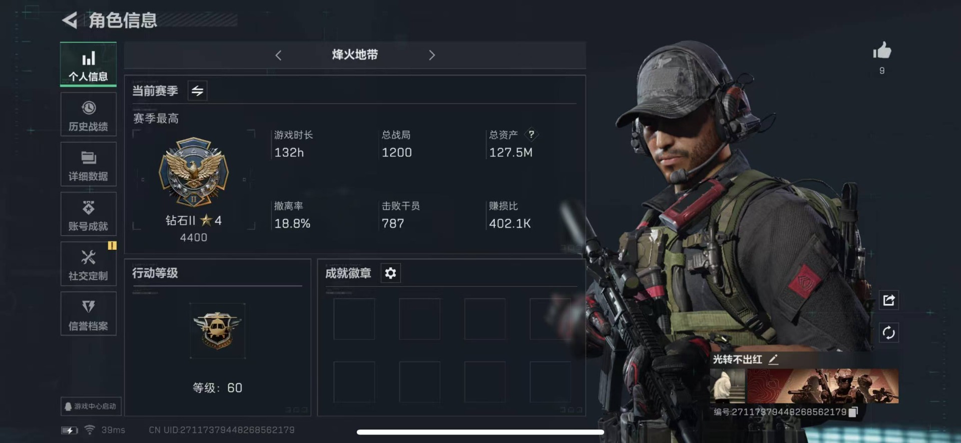 [11677104]总资产:127.5 1干员外观 7传说枪械 高级安全箱(2×3)9.15号到期 可二次 可修改实名 烽火地带段位:钻石 全面战场段位:无段位 哈夫币:27.863 传说武器皮肤:UZI冲锋枪-特斯拉线圈,SR-3M紧凑突击步枪-特斯拉线圈,AK-12突击步枪-特斯拉线圈,复合弓-黑-天际线,CAR-15突击步枪-阿米娅,725双管霰弹枪-送葬人-无题密令,勇士冲锋枪-能天使-午夜邮差 史诗武器皮肤:PKM通用机枪-荒野求生,MP5冲锋枪-深海恐惧,SR-3M紧凑突击步枪-荒野求生,勇士冲锋枪-深海恐惧,AKM突击步枪-林中猎手,M16A4突击步枪-竞赛选手,SVD狙击步枪-荒野求生,M1014霰弹枪-林中猎手,SV-98狙击步枪-林中猎手,PSG-1射手步枪-无垢,SV-98狙击步枪-囚徒,腾龙突击步枪-无垢,MP7冲锋枪-无垢 干员外观:蜂医-送葬人·无题密令(S5)