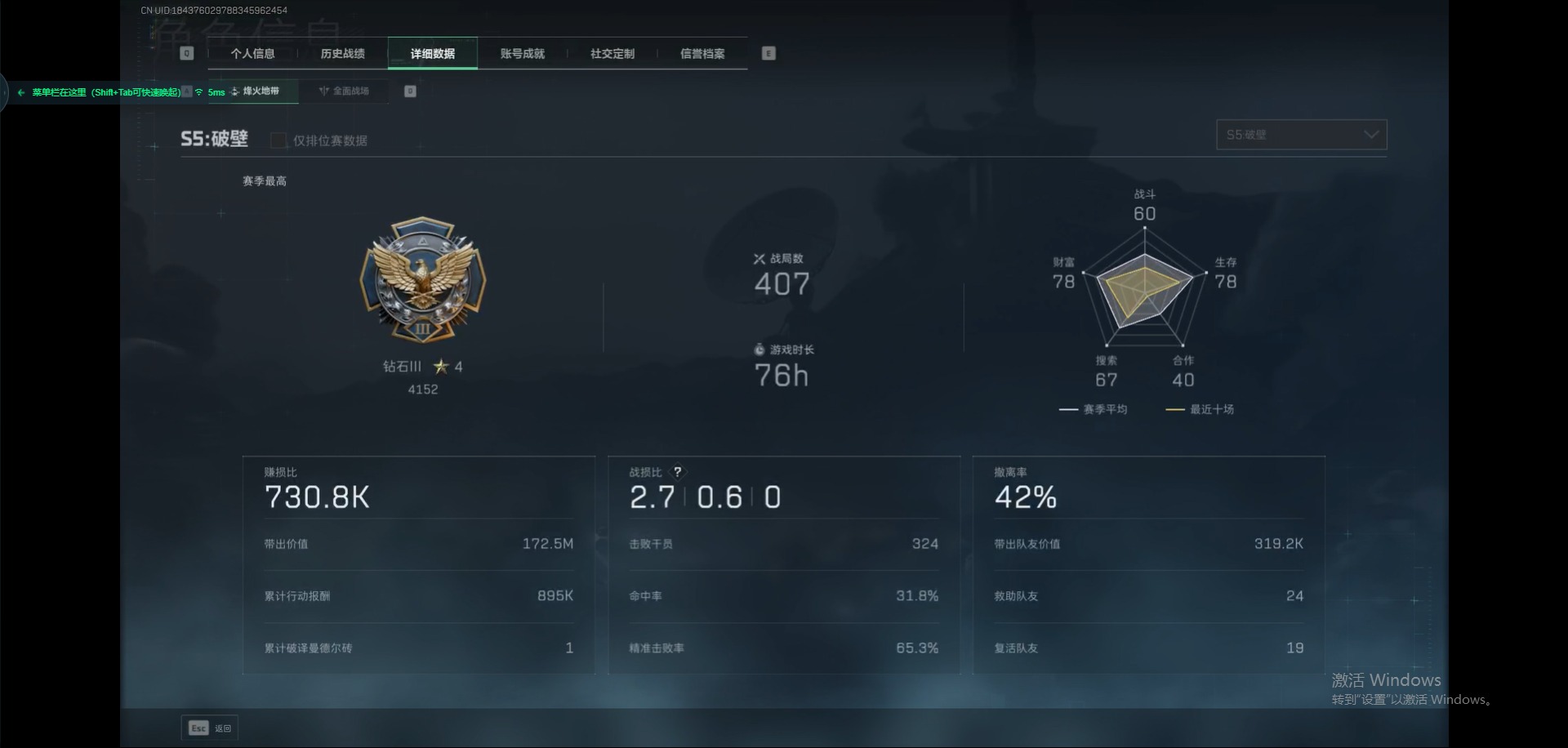 - [11561836]实名: 可修改 时装数: 97 枪械数: 26 战备数: 17 热门装扮: 旋转彩虹 稀有枪皮: SCAR-L梦幻火箭