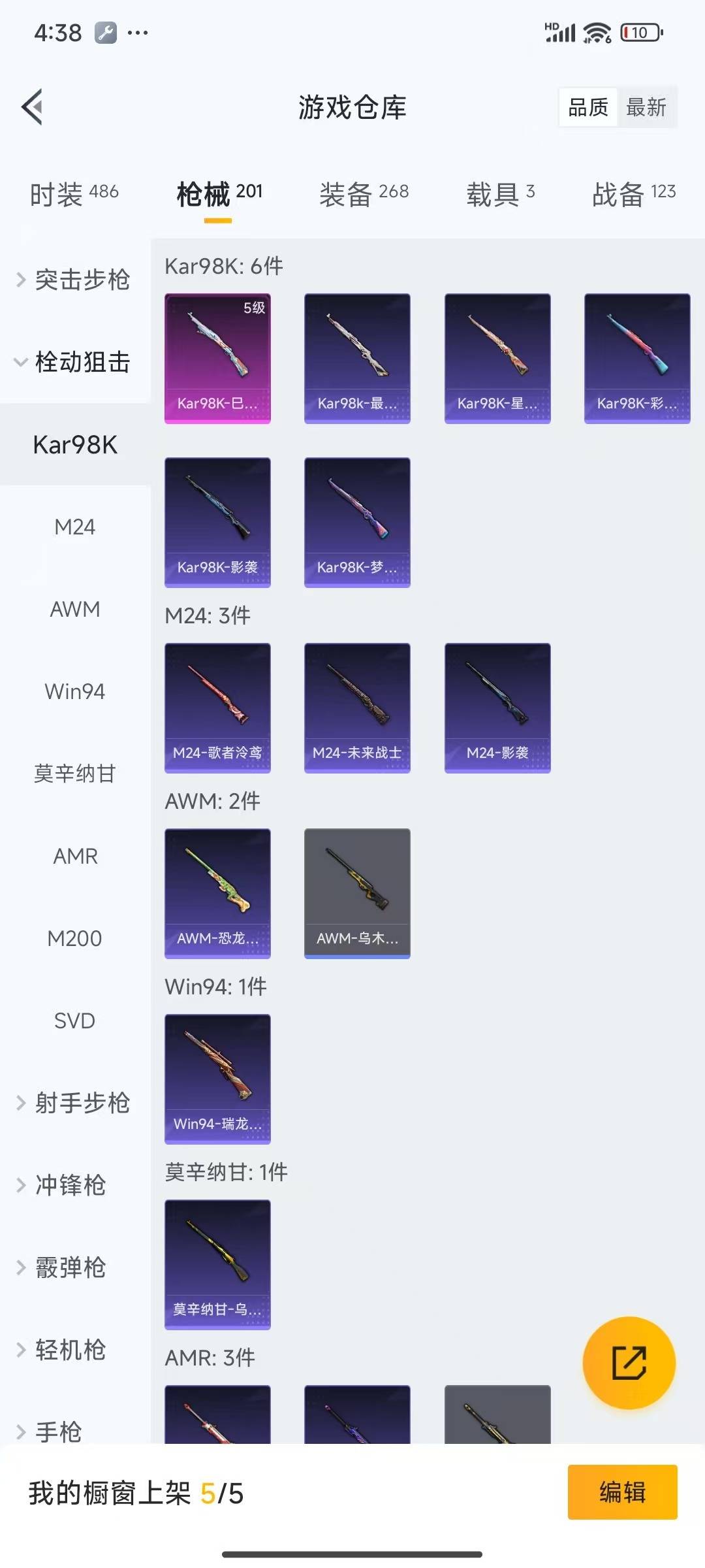 - [11324541]4粉装 9特效枪 2载具 4印记 可二次 可修改实名 身法装备:初号机 觉醒Ver.(新紫螳螂),8号机(新粉螳螂),Mark.06(新蓝螳螂) 优质装备:阿斯顿·马丁DBS(红),路特斯ELETRE(冰川蓝),香水柠檬,Groza香水柠檬,P90-电糖天使,M416墨龙九天,六级M416-墨龙九天,AMR鸢尾晶梦,M200梦海之灵,UMP45量子极限,M762-青锋波束,Kar98K-巳巳如意 热门装扮:齐天大圣,星空武士,初号机 觉醒Ver.(新紫螳螂),迅捷狂鲨,呆萌铁蟹 稀有枪皮:DP-28-豹影疾电 六级特效枪:六级GROZA-香水柠檬 五级特效枪:五级M762-青锋波束,五级UMP45-量子极限,五级AMR-鸢尾晶梦 四级特效枪:四级Kar98K-巳巳如意 三级特效枪:三级P90-电糖天使,三级M200-梦海之灵,三级DP-28-豹影疾电 紫色装扮:SS31特训套装,旭日情侣,SS30特训套装,SS33特训套装,顶瓜瓜,冰爽海盐,浪漫樱花,军刀雅典娜,长空猛禽,雪山精英,蜜露汐语,魅力单车,龟仙人,冰河战士,龙魂突击队,蝶变,香桃花海,暗金炫舞,猛禽,小熊娃娃,雏菊兔兔,萝兰蝴蝶,SS29特训,极冰使者,星途旅人,纯真浪花,热情海星,曼妙人鱼,卖崽青蛙,铁血战翼,8号机(新粉螳螂),Mark.06(新蓝螳螂),冰公主,异域银装,竞技名士,粉红小猪,焰鹰斗篷,幻羽潜行,大橘大利,SS32特训服(SS32特训套装),绯格组合,光之冒险 优质战备:鸢尾晶梦降落伞,霓虹漫游降落伞,绮梦流光降落伞,墨龙九天降落伞,龙翔九天飞行器,精灵梦叶罗丽降落伞,初号机 觉醒Ver.降落伞,星途旅人降落伞,深渊漩涡飞行器,江南烟雨降落伞,香水柠檬降落伞