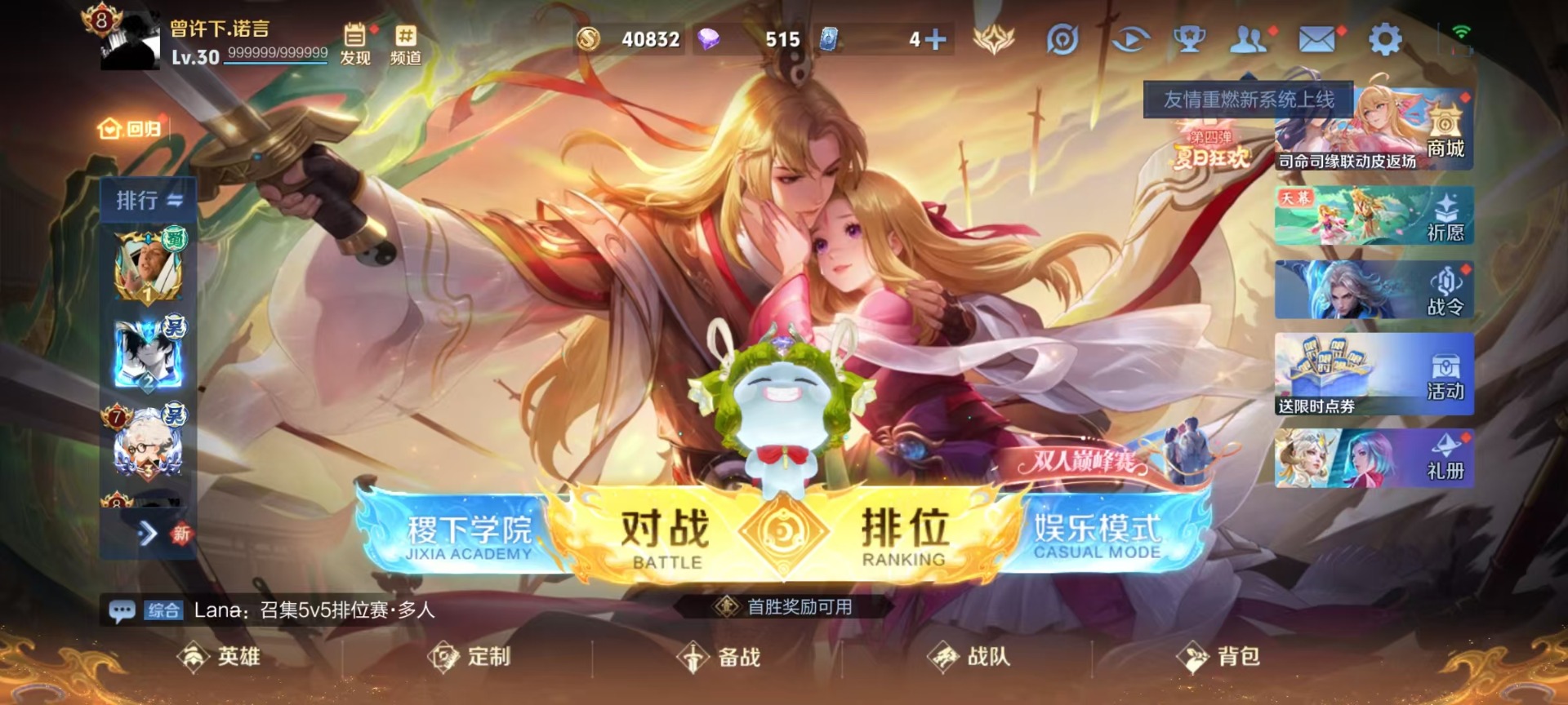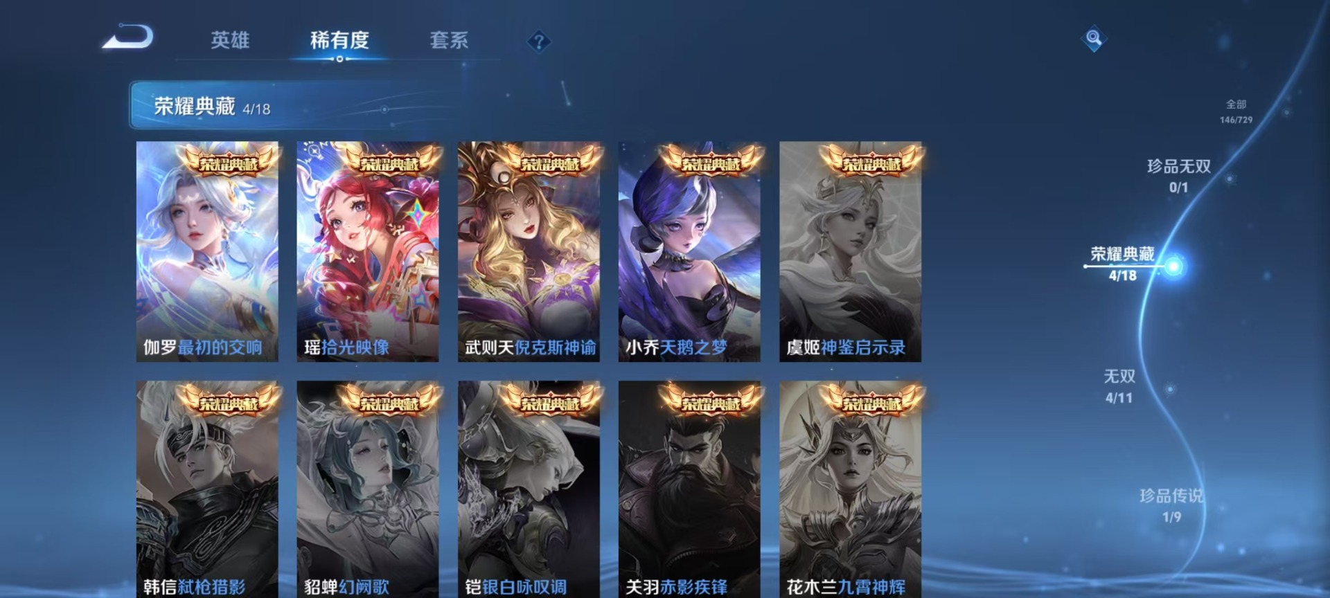 - PX_2104817- 可二次 V8 贵族积分52359 安卓QQ/163皮肤/124英雄/0典藏/0珍品无双/1无双/3珍品传说/16传说/50史诗/8稀有英雄 【1 星传说皮肤】,破晓神光 镜, 【3 珍品传说】,怪盗基德 马可波罗,时之奇旅 孙策,器灵·落星盏 嫦娥, 【1 无双皮肤】,器灵·螭龙剑 曜, 【16 传说皮肤】,胖达荣荣 梦奇,启明星使 虞姬,碎云 百里守约,无双飞将 马超,诗