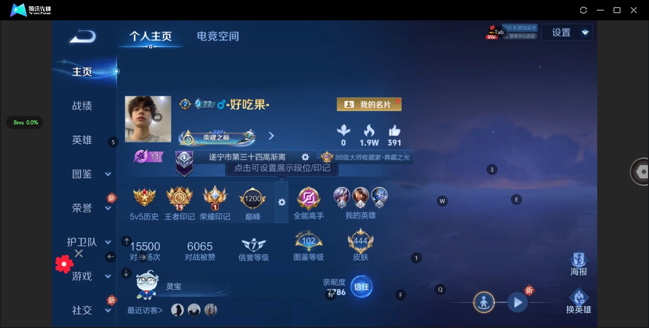 - [11600655]V8 2典藏 8传说 124英雄 249皮肤 可修改实名 荣耀水晶:鸣剑·曳影,全息碎影(猴子典藏) 传说皮:地狱火,末日机甲-孙尚香(绿蚂蚱),超时空战士-狄仁杰,妄想实况,夜礼服假面 珍宝阁皮:蔷薇恋人 限定皮:至尊宝,凤求凰(白切鸡),飞衡(韩信年限),遇见飞天,高山流水,诗剑行,五谷丰年,冰锋战神,游园惊梦,梁祝,李小龙,朱雀志(守约年限),如梦令-后羿,一生所爱,大圣娶亲,美猴王,山海·玄木吟(马可年限) 史诗皮:白龙吟,黄金分割率,千年之狐,江河有灵,百解令(蒙犽),偶像歌手,暗夜猫娘,末日机甲-吕布,猫狗日记-孙策,乱世虎臣,修罗,女仆咖啡,水果甜心,星夜王子,心灵骇客,功夫厨神,暗隐猎兽者,鬼剑武藏,心灵战警,舞动绿茵,地狱岩魂,繁星吟游(呼啦呼啦),拒霜思,缤纷独角兽,乘风破浪,水晶猎龙者,曙光守护者,热力回旋,金属风暴,原初追逐者,圣诞狂欢,圣诞恋歌,鹰眼统帅,魅力维加斯,无心,未来纪元-赵云