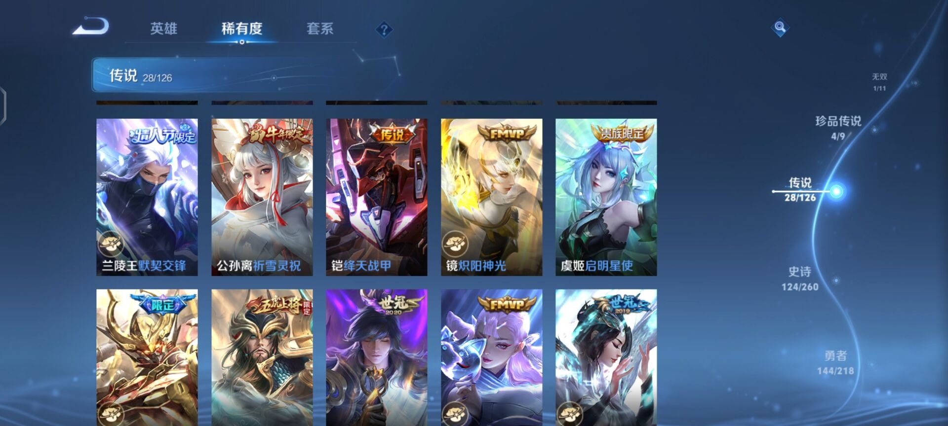 - [12089116]V9 2典藏 1珍品传说 18传说 125英雄 253皮肤 典藏英雄武则天 可修改实名 优质装备:无限飓风号(高达),全息碎影(猴子典藏),朽木白哉,黄金狮子座,黄金射手座,冠军飞将,久胜战神,云霓雀翎,末日机甲-孙尚香(绿蚂蚱),地狱火,海洋之心,地狱之眼,胖达荣荣,超时空战士-狄仁杰,无双飞将,涂山容容 珍宝阁皮:妄想食味 限定皮:鸣野蒿,白虎志(电光耗子),凤求凰(白切鸡),凤凰于飞,太华(伽罗年限),武陵仙君(小桃花),时之彼端,魔法小厨娘,飞衡(韩信年限),玄嵩(庄周年限),瑞麟志(木兰年限),五谷丰年,青龙志(铠年限),幽恒(沐浴露),梁祝,天狼狩猎者,岱宗(典韦年限),天狼征服者,李小龙,逐梦之光,玄武志(苏烈年限),朱雀志(守约年限),如梦令-嫦娥,如梦令-后羿,奇迹圣诞,一生所爱,大圣娶亲,引擎之心,冰霜恋舞曲,神奇女侠 史诗皮:鸭鸭历险记-刘禅,龙之律动,石田雨龙,白龙吟,蒙恬荣光圣徽,无限星赏官,冰冠公主,偶像歌手,龙骑士(小龙虾),末日机甲-吕布,猫狗日记-孙策,猫狗日记-大乔,乱世虎臣,节奏热浪,摇滚巨星,水果甜心,天才门将,星夜王子,功夫厨神,幽灵船长,鬼剑武藏,舞动绿茵,繁星吟游(呼啦呼啦),缤纷独角兽,乘风破浪,逐浪之夏,月团寄思,曙光守护者,箭羽风息,金属风暴,原初追逐者,圣诞狂欢,圣诞恋歌,鹰眼统帅,暗夜贵公子,无心,未来纪元-赵云