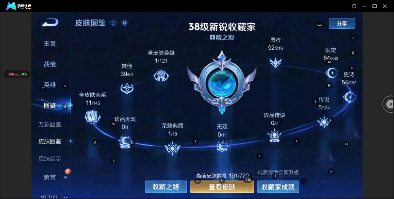 [11678656]V7 1典藏 5传说 125英雄 191皮肤 可修改实名 荣耀水晶:鸣剑·曳影 传说皮:仲夏夜之梦(大飞蛾),久胜战神,炽阳神光 珍宝阁皮:胡桃夹子,蔷薇恋人 限定皮:鸣野蒿,神威(电光马子),五谷丰年,武圣,游园惊梦,梁祝,李小龙,百木心枪 史诗皮:鸭鸭历险记-刘禅,龙之律动,雪豹·霜爪,藏狐·褐绒,紫霞仙子,白龙吟,黄金分割率,特工魅影,千年之狐,江河有灵,蒙恬荣光圣徽,冰冠公主,魅语,电玩·爆裂旋风,末日机甲-吕布,节奏热浪,修罗,摇滚巨星,水果甜心,天才门将,星夜王子,德古拉伯爵,鬼剑武藏,心灵战警,舞动绿茵,纤云弄巧,繁星吟游(呼啦呼啦),逐浪之夏,月团寄思,水晶猎龙者,箭羽风息,金属风暴,原初追逐者,圣诞狂欢,鹰眼统帅,魅力维加斯,黎明之约,赏金猎手,无心