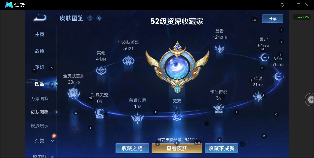 - PX_2062798-86 安卓QQ/至尊星耀/272皮肤/124英雄/3典藏/0珍品无双/0无双/2珍品传说/18传说/67史诗/9稀有英雄 【2 珍品传说】怪盗基德 马可波罗,时之奇旅 孙策, 【3 典藏皮肤】鸣剑·曳影 李白,星域神启 诸葛亮,最初的交响 伽罗, 【18 传说皮肤】启明星使 虞姬,云霓雀翎 虞姬,逐花归海 澜,炽阳神光 镜,黄金射手座 后羿,怒海麟威 吕布,末日机甲 孙尚香,