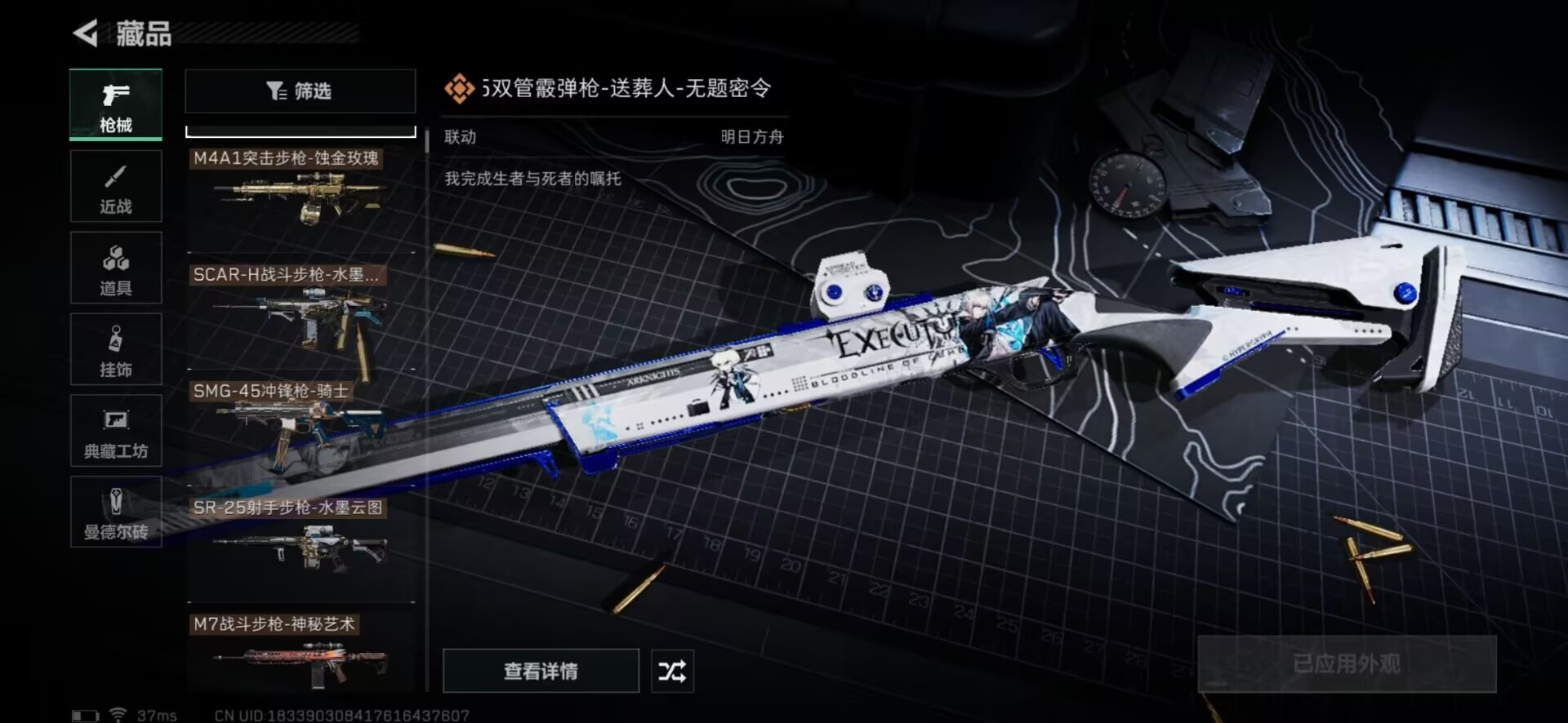 - [11522190]总资产:72.1M 2干员外观 2近战传说 9传说枪械 哈夫币:1.944K 可二次 可修改实名 优质装备:近战-黑海,近战-北极星 烽火地带段位:钻石 全面战场段位:无段位 传说武器皮肤:SCAR-H战斗步枪-水墨云图,K437突击步枪-北极星,QCQ171冲锋枪-北极星,725双管霰弹枪-送葬人-无题密令,AK-12突击步枪-夜鹰,MP5冲锋枪-黑海,QJB201轻机枪-黑海 干员外观:骇爪-水墨云图,无名-夜鹰
