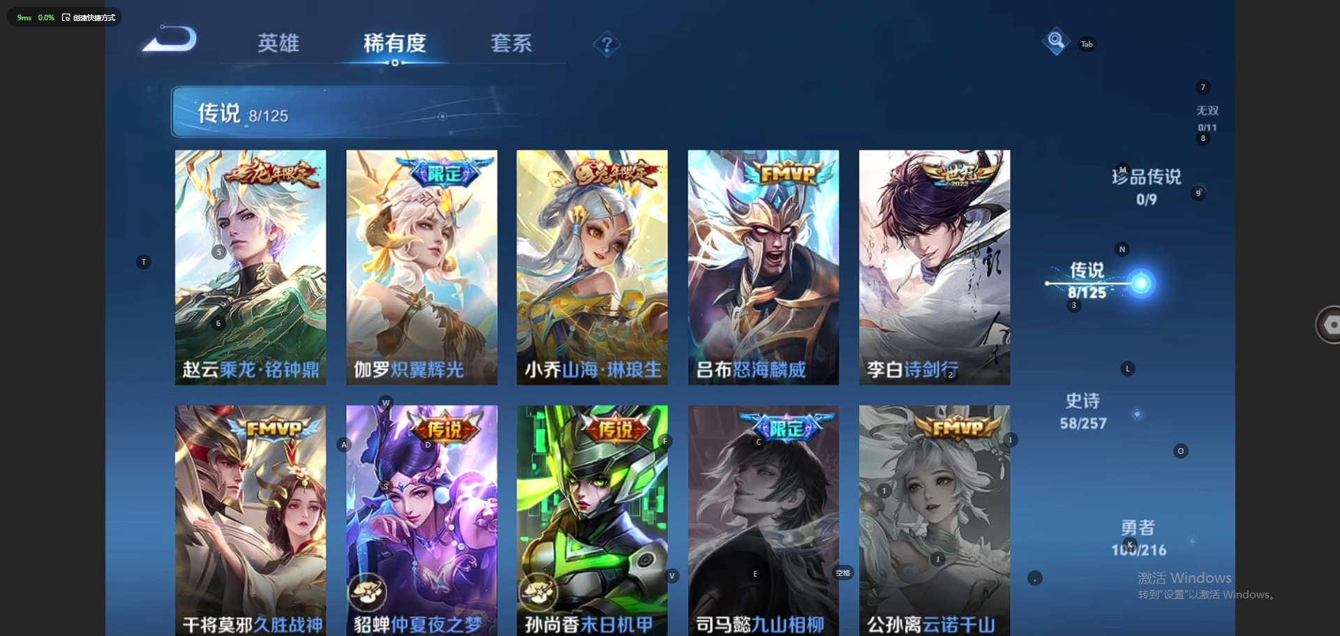 - [11204401]V7 14传说 123英雄 206皮肤 可修改实名 安全保护中 传说皮:乘龙·铭钟鼎(赵云年限),乘龙·淬吴钩(孙策年限),吕布曦玄引,游龙清影(小青龙),黄金射手座,淬星耀世,久胜战神,绛天战甲(鸡嘴战神),鹤羽星尊,妄想实况,澜逐花归海 珍宝阁皮:妄想食味,蔷薇恋人 限定皮:愿照·千秋盛(女娲年限),鸣野蒿,傲雪梅枪,齐天大圣,五谷丰年 史诗皮:星界战将,器灵·浮梦炉,鸭鸭历险记-刘禅,石田雨龙,百相守梦-黄忠,蒙犽顽岩魄,破空之剑,紫霞仙子,特工魅影,千年之狐,江河有灵,高渐离燃音魔法,百解令(蒙犽),偶像歌手,暗夜猫娘,猫狗日记-大乔,乱世虎臣,节奏热浪,女仆咖啡,摇滚巨星,水果甜心,星夜王子,暗隐猎兽者,幽灵船长,鬼剑武藏,暗渊魔法,地狱岩魂,拒霜思,乘风破浪,逐浪之夏,水晶猎龙者,曙光守护者,箭羽风息,金属风暴,圣诞狂欢,圣诞恋歌,鹰眼统帅,无心,未来纪元-赵云