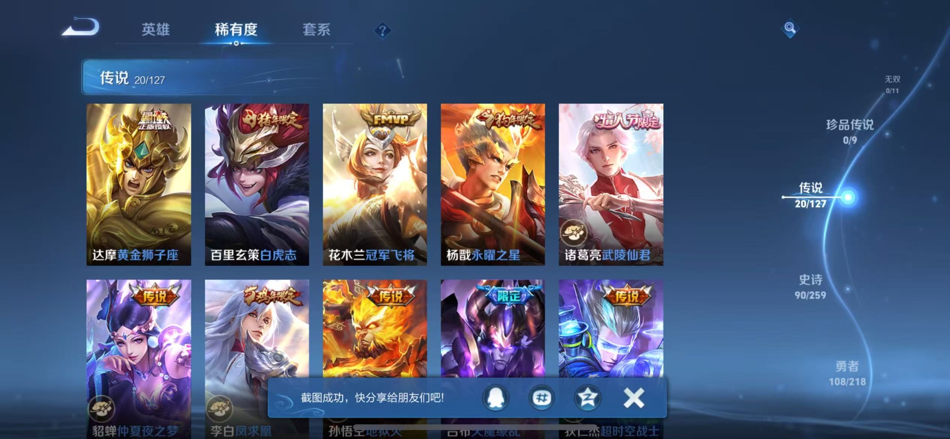 - PX_2100515-贵族7/皮肤189/传说3/史诗61/英雄124/女武神/特工战影/云霓雀翎/太华/桑启鸣野蒿/狰/狄仁杰阴阳师/凯尔特女王/赵云皇家上将/狮舞东方/蜃楼王/玄嵩/庄周高山流水/高渐离死亡摇滚/阿轲迷踪丽影/妖精王/炼金王/赤莲之焰/朔风刀/天狼征服者/穷奇/岱宗/暗影游猎/狄仁杰魔术师/万华元夜/沙漠行僧/项羽海滩派对/醍醐杖/演武夺筹/刘邦夺宝奇兵/飞衡/兰陵王驯魔猎人/