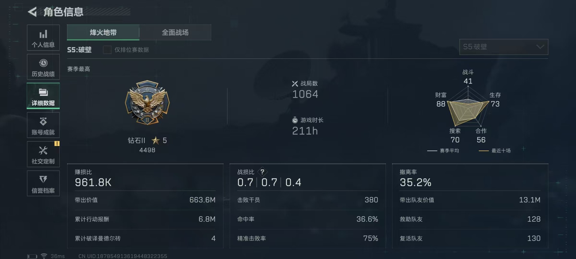 [11679401]总资产:312.1M 1近战传说 6传说枪械 哈夫币:35.749K 顶级安全箱(3×3)9.15号到期 可二次 可修改实名 优质装备:近战-黑海,顶级安全箱(3x3) 烽火地带段位:钻石 全面战场段位:列兵 传说武器皮肤:AK-12突击步枪-夜鹰,M16A4突击步枪-狩猎时刻,M4A1突击步枪-阿米娅,Vector冲锋枪-狩猎时刻,G3战斗步枪-狩猎时刻 史诗武器皮肤:Ash-12战斗步枪-守夜人,SG552突击步枪-尖端治疗,SG552突击步枪-深海恐惧,AKM突击步枪-林中猎手,SCAR-H战斗步枪-囚徒,AKM突击步枪-猎宝团