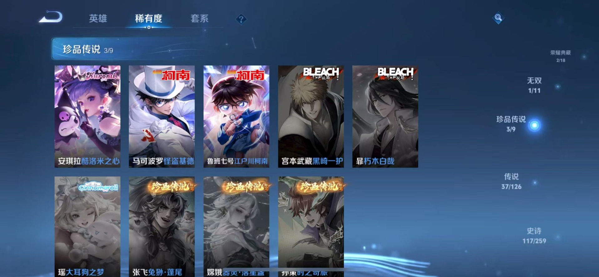 - [11933217]V9 3典藏 1无双 2珍品传说 33传说 126英雄 379皮肤 典藏英雄武则天 可修改实名 优质装备:鸣剑·曳影,九霄神辉(木兰典藏),神器·明辉仪,最初的交响(伽罗典藏),器灵·落星盏,黄金射手座,云鹰飞将(小将军),绛天战甲(鸡嘴战神),猫影幻舞,炽阳神光,一念神魔,末日机甲-孙尚香(绿蚂蚱),仲夏夜之梦(大飞蛾),零号·赤焰,海洋之心,地狱之眼,音你心动-周瑜,胖达荣荣,乞巧织情,时之恋人-刘备(电焊工),淬星耀世,超时空战士-狄仁杰,末日机甲-孙策,神器·明辉仪,山海·炽霜斩(李信年限),浮生妄,鹤归松栖(云缨),涂山容容 珍品传说:时之奇旅-孙策 传说皮:死亡执政官,幻光神枪 珍宝阁皮:蔷薇恋人,女武神,玩趣恶龙 限定皮:愿照·岁时盈(虞姬年限),愿照·众生和(妲己年限),凤求凰(白切鸡),傲雪梅枪,时之彼端,时雨天司(水龙头),飞衡(韩信年限),玄嵩(庄周年限),无限倾心-项羽,遇见飞天,高山流水,怒海麟威,降魔,五谷丰年,青龙志(铠年限),幽恒(沐浴露),天狼运算者,游园惊梦,梁祝,祈雪灵祝(雪兔子),李小龙,朱雀志(守约年限),辉光之辰,如梦令-嫦娥,如梦令-后羿,默契交锋-花木兰,大圣娶亲,天魔缭乱,深海之息(深海大菠萝),山海·玄木吟(马可年限) 史诗皮:化蝶舞,龙之律动,紫霞仙子,苍穹之光,电玩小子(小书包),黄金分割率,特工魅影,千年之狐,江河有灵,匿光侦查者,真我赫兹(百里守约),百解令(蒙犽),蒙恬荣光圣徽,无限星赏官,匿光破解者,青蛇,偶像歌手,白蛇,晚萤,电玩·爆裂旋风,暗夜猫娘,龙骑士(小龙虾),末日机甲-吕布,猫狗日记-孙策,猫狗日记-大乔,时之恋人-孙尚香,乱世虎臣,节奏热浪,修罗,女仆咖啡,摇滚巨星,水果甜心,绅士熊喵,天才门将,星夜王子,心灵骇客,功夫厨神,德古拉伯爵,暗隐猎兽者,幽灵船长,鬼剑武藏,心灵战警,乐园奇幻夜,舞动绿茵,地狱岩魂,纤云弄巧,繁星吟游(呼啦呼啦),拒霜思,缤纷独角兽,乘风破浪,逐浪之夏,月团寄思,水晶猎龙者,曙光守护者,箭羽风息,金属风暴,原初追逐者,圣诞狂欢,圣诞恋歌,鹰眼统帅,暗夜贵公子,魅力维加斯,黎明之约,无心,未来纪元-赵云