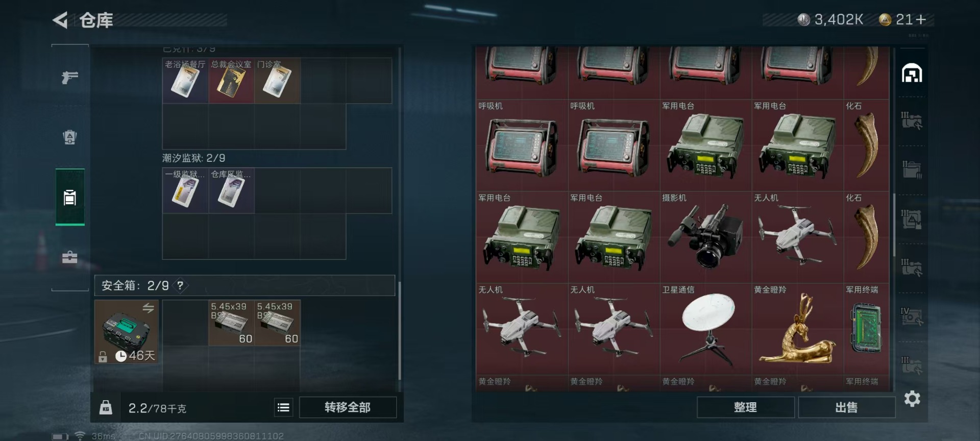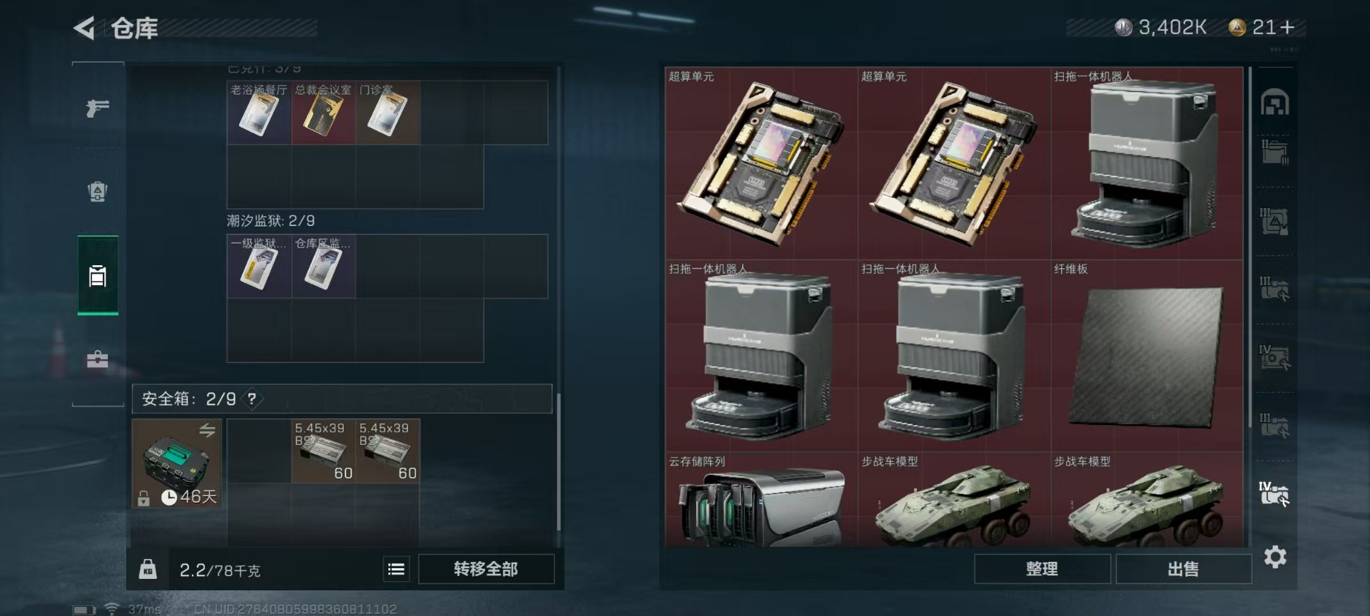 - [11296345]总资产:798.2 6传说枪械 顶级安全箱(9.17到期) 可二次 可修改实名 优质装备:顶级安全箱(3x3) 烽火地带段位:青铜 全面战场段位:列兵 哈夫币:515 传说武器皮肤:UZI冲锋枪-特斯拉线圈,SR-3M紧凑突击步枪-特斯拉线圈,AK-12突击步枪-特斯拉线圈,复合弓-黑-天际线,CAR-15突击步枪-阿米娅,勇士冲锋枪-能天使-午夜邮差 史诗武器皮肤:AKM突击步枪-林中猎手,M1014霰弹枪-林中猎手,SV-98狙击步枪-林中猎手,PTR-32突击步枪-英雄,M250通用机枪-囚徒,SV-98狙击步枪-囚徒,S12K霰弹枪-曙光,M700狙击步枪-竞技风