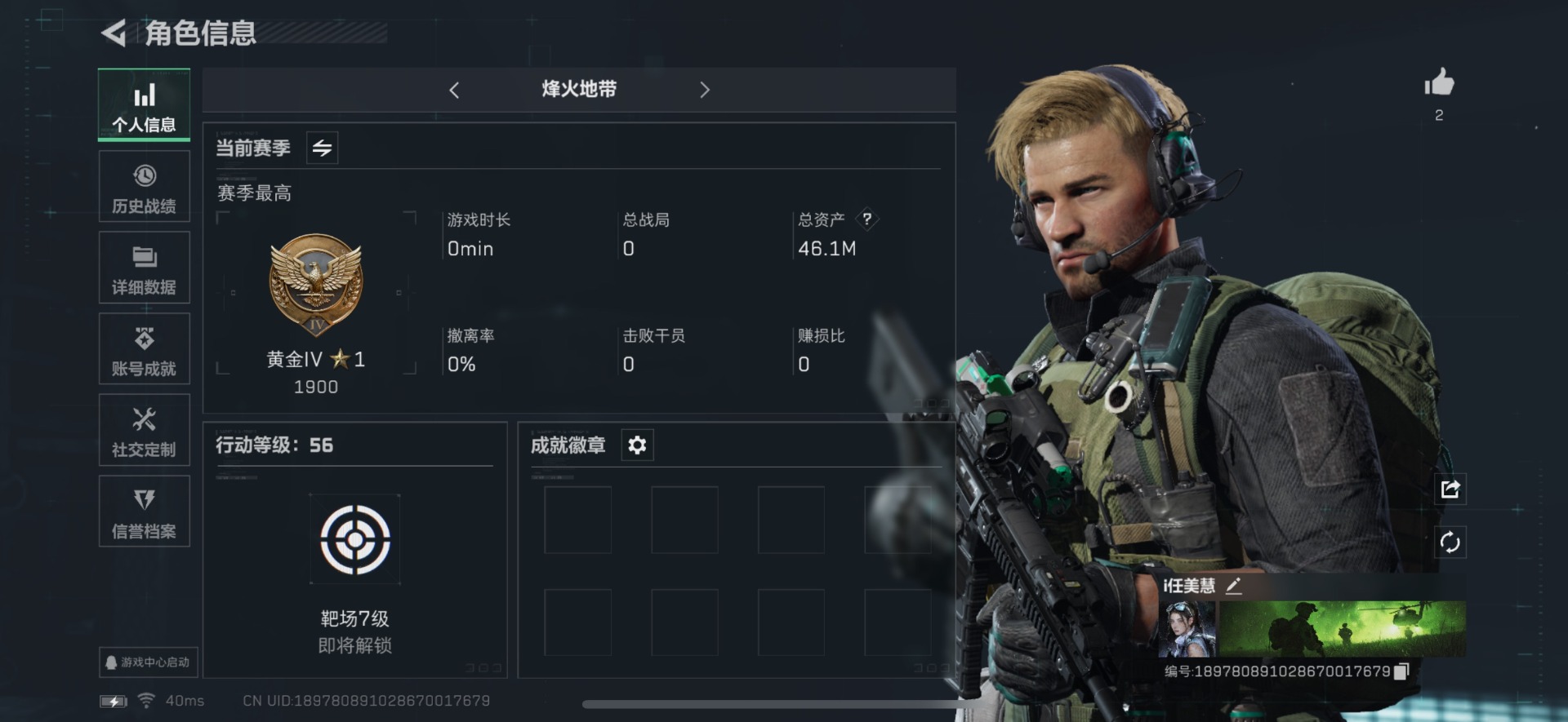 [11679822]总资产:46.1M 1干员外观 2传说枪械 哈夫币:35.785K 可二次 可修改实名 烽火地带段位:黄金 全面战场段位:无段位 传说武器皮肤:SCAR-H战斗步枪-水墨云图,AK-12突击步枪-夜鹰 史诗武器皮肤:PKM通用机枪-蝮蛇,AUG突击步枪-蝮蛇,M700狙击步枪-蝮蛇,PKM通用机枪-守夜人,勇士冲锋枪-深海恐惧,SG552突击步枪-深海恐惧,AKM突击步枪-林中猎手,沙漠之鹰-曙光,Vector冲锋枪-阿萨拉文明,S12K霰弹枪-曙光,PKM通用机枪-英雄,M700狙击步枪-竞技风 干员外观:骇爪-水墨云图