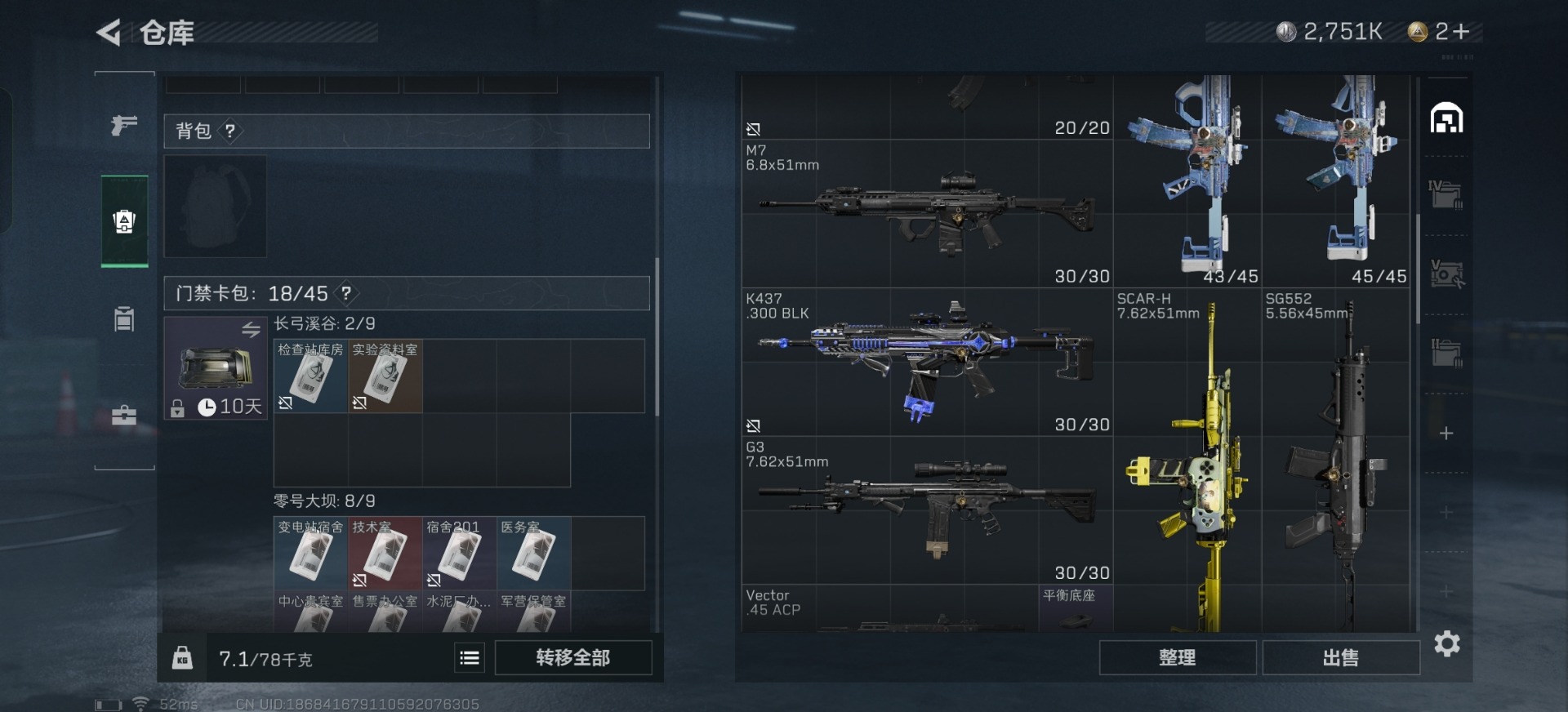 - [11678560]可二次 可修改实名 实名:可修改 高级安全箱(2×3)9.15号到期 总资产:79 哈夫币:3.451 传说武器皮肤:近战-黑海,近战-北极星,SCAR-H战斗步枪-电玩高手,Vector冲锋枪-美杜莎,K416突击步枪-命运(典藏),K437突击步枪-极速狂飙,复合弓-黑-天际线,725双管霰弹枪-送葬人-无题密令,QCQ171冲锋枪-北极星,K437突击步枪-北极星,M14射手步枪-工业审判,腾龙突击步枪-黎明警戒,AKM突击步枪-黎明警戒,G18-黎明警戒,M4A1突击步枪-蚀金玫瑰 干员外观:红狼-蚀金玫瑰,骇爪-水墨云图,威龙-飞虎