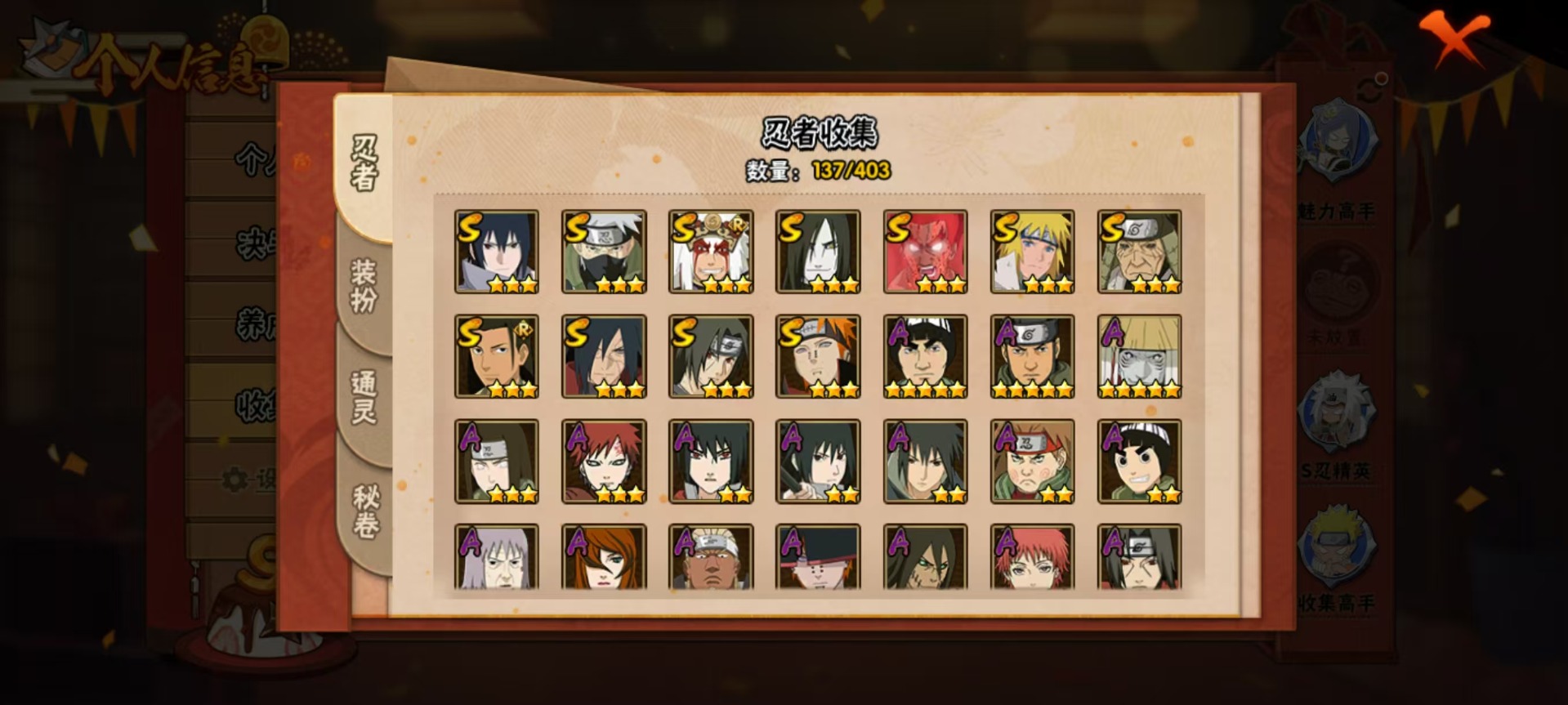 [11680168]V9 11S忍 23A忍 14通灵 727.1W战力 可二次 可修改实名 优质装备:猿飞日斩「秽土转生」,迈特凯「死门」,宇智波佐助「永恒万花筒」,千手柱间·木叶创立,宇智波斑「秽土转生·解」,旗木卡卡西「须佐能乎」 S级忍者:自来也 「舞之豪杰」,宇智波鼬 「须佐能乎」,佩恩「天道」,波风水门,大蛇丸