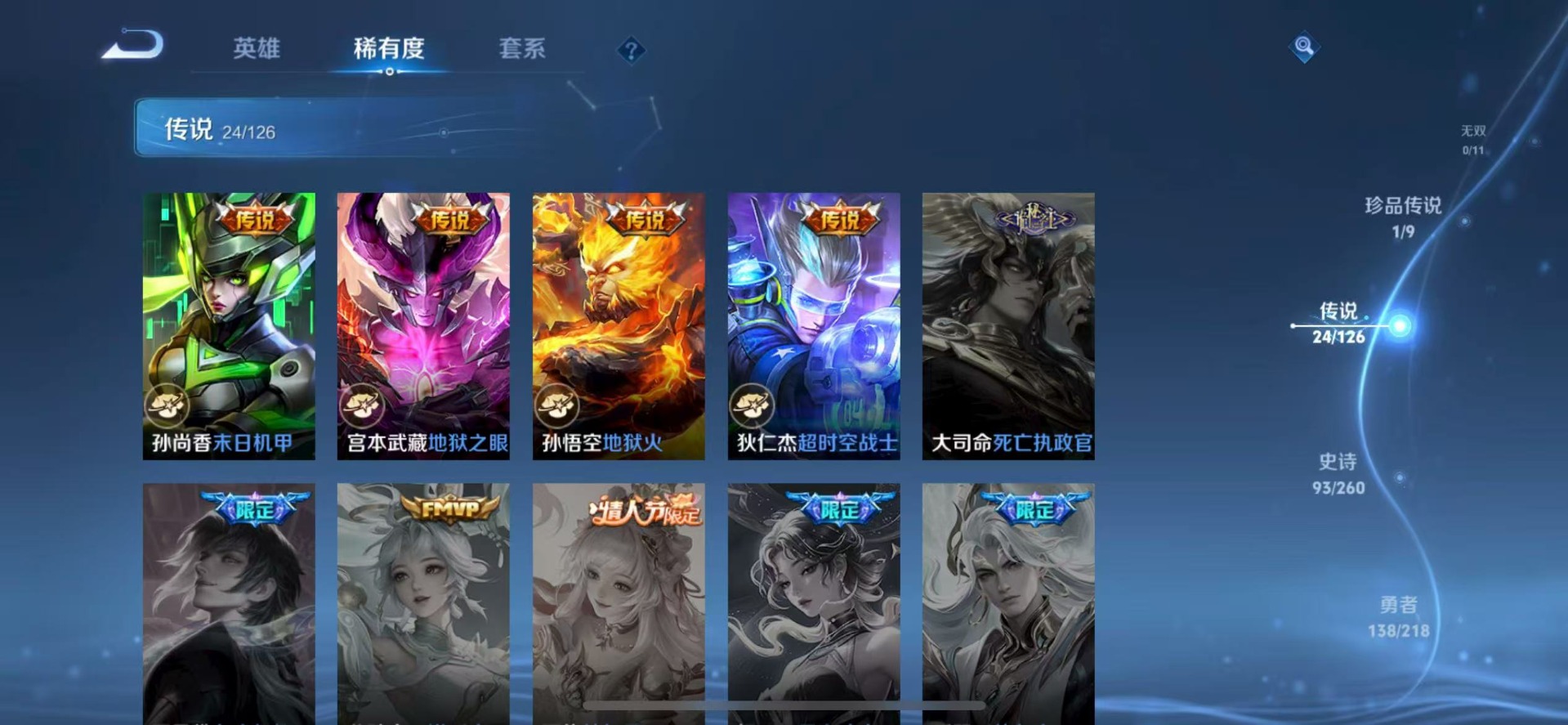 - [12260021]V8 26传说 126英雄 314皮肤 典藏英雄武则天 可修改实名 优质装备:黄金狮子座,黄金射手座,绛天战甲(鸡嘴战神),炽阳神光,一念神魔,仲夏夜之梦(大飞蛾),音你心动-小乔,零号·赤焰,海洋之心,地狱之眼,音你心动-周瑜,李逍遥,乞巧织情,时之恋人-刘备(电焊工),淬星耀世,超时空战士-狄仁杰,山海·炽霜斩(李信年限) 珍宝阁皮:蔷薇恋人,女武神 限定皮:愿照·九州拓(澜年限),愿照·岁时盈(虞姬年限),逐霄战戟,鸣野蒿,白虎志(电光耗子),凤求凰(白切鸡),白晶晶,时雨天司(水龙头),遇见飞天,高山流水,怒海麟威,五谷丰年,游园惊梦,梁祝,御风骁将(吕布年限),天狼溯光者,李小龙,逐梦之影,朱雀志(守约年限),霸王别姬-虞姬,默契交锋-兰陵王,孙行者,猪悟能,大圣娶亲,乒乒小将,山海·玄木吟(马可年限) 史诗皮:化蝶舞,紫霞仙子,苍穹之光,电玩小子(小书包),特工魅影,魅语,晚萤,偶像歌手,龙骑士(小龙虾),末日机甲-吕布,猫狗日记-孙策,时之恋人-孙尚香,乱世虎臣,节奏热浪,修罗,女仆咖啡,摇滚巨星,水果甜心,绅士熊喵,天才门将,星夜王子,心灵骇客,时之奇旅-安琪拉,暗隐猎兽者,幽灵船长,鬼剑武藏,暗渊魔法,心灵战警,天秀·启明,舞动绿茵,地狱岩魂,纤云弄巧,繁星吟游(呼啦呼啦),拒霜思,缤纷独角兽,乘风破浪,逐浪之夏,水晶猎龙者,箭羽风息,金属风暴,圣诞狂欢,圣诞恋歌,鹰眼统帅,王者之锤,暗夜贵公子,魅力维加斯,黎明之约,赏金猎手,无心,未来纪元-赵云